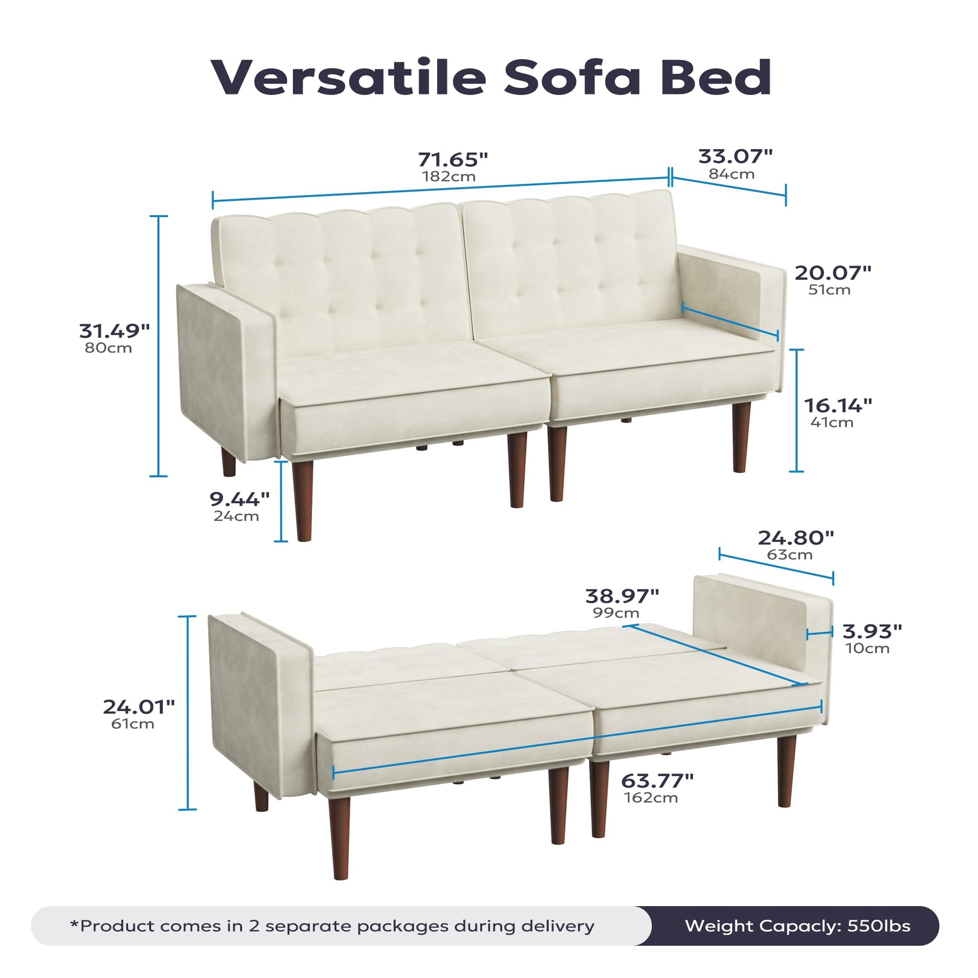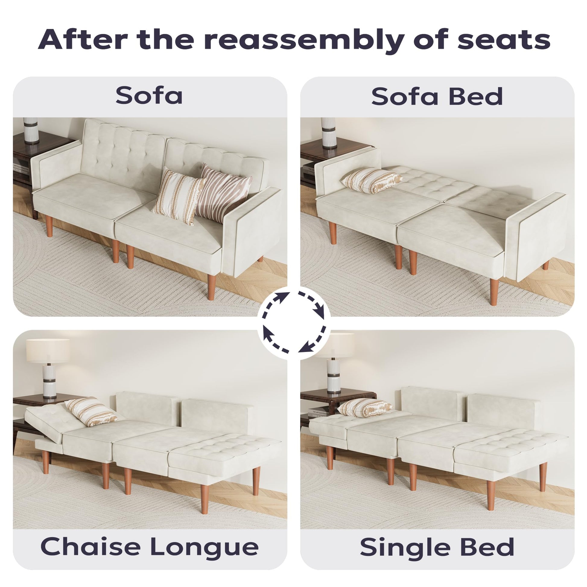 Transform your living space with this versatile 71" velvet futon sofa bed. Featuring 2 independent 3-angle adjustable backrests, this convertible sofa seamlessly transitions between sitting, reclining, and sleeping positions. Perfect for small spaces, living rooms, offices, and apartments.