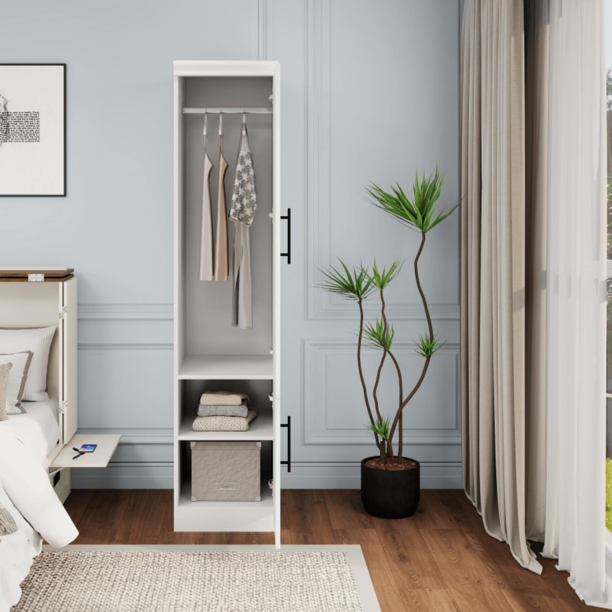 - Spacious Storage: Ample room to organize clothes, ties, perfumes, and accessories with a smart interior layout that maximizes every inch of space
