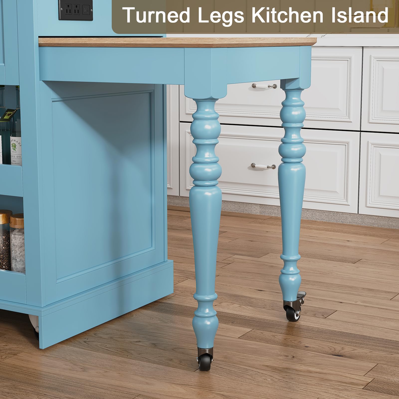 72" Extendable Kitchen Island with Power Outlet and Storage