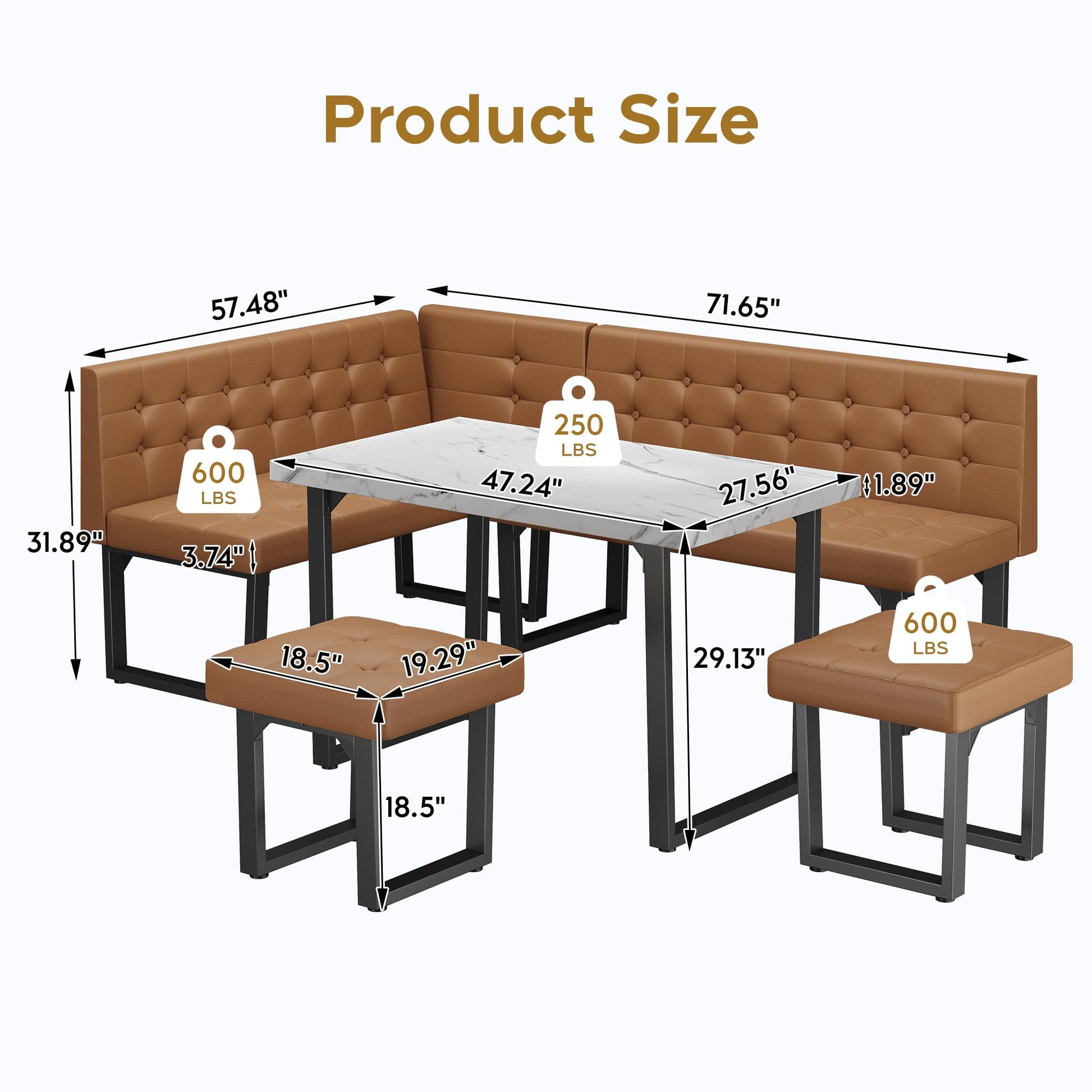 Transform your dining space with this modern corner dining table set, designed to maximize seating while minimizing footprint. This complete 5-piece breakfast nook features a spacious 72-inch table paired with a practical storage bench, offering both functionality and style for your kitchen or dining area.