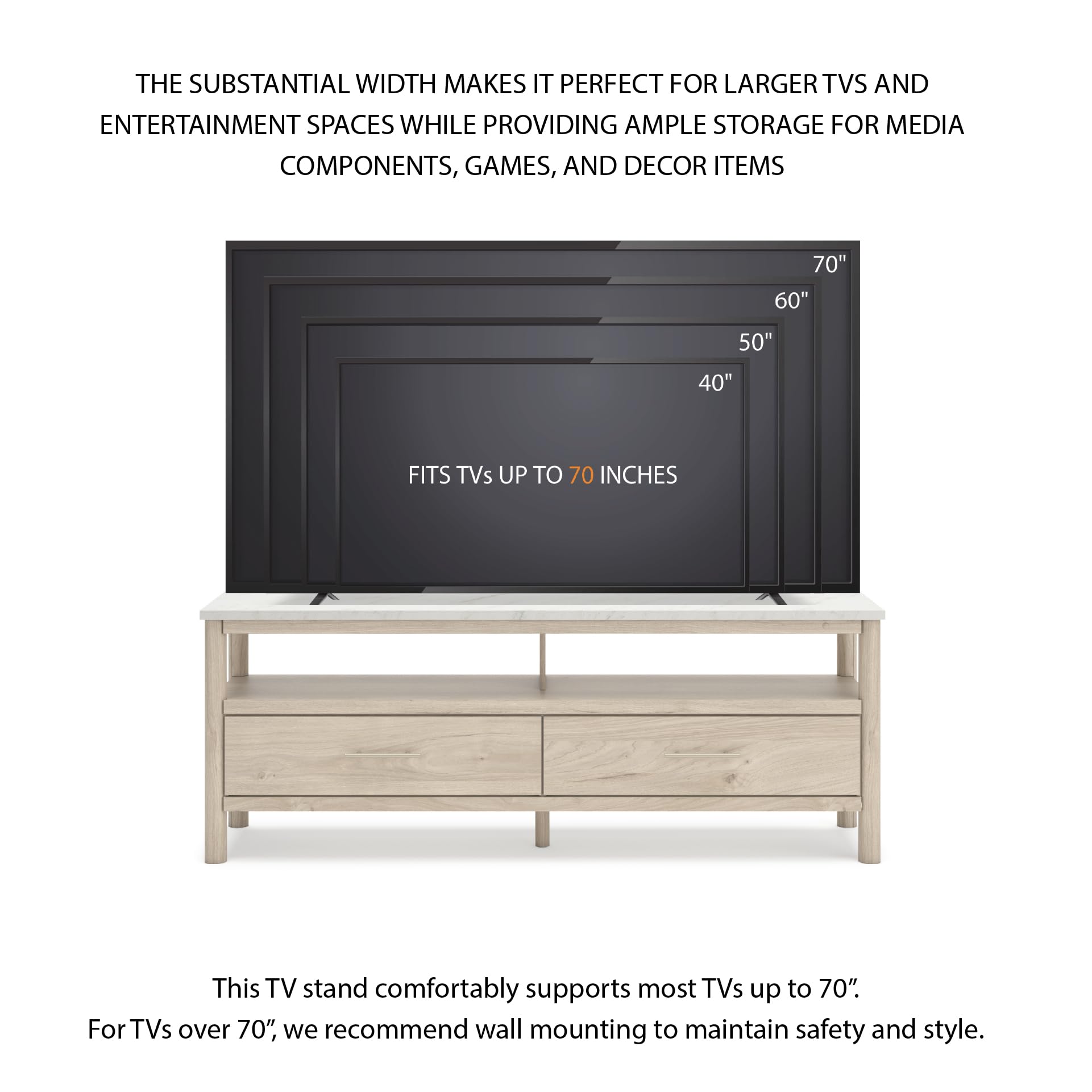 | TV Capacity | Up to 82 inches |