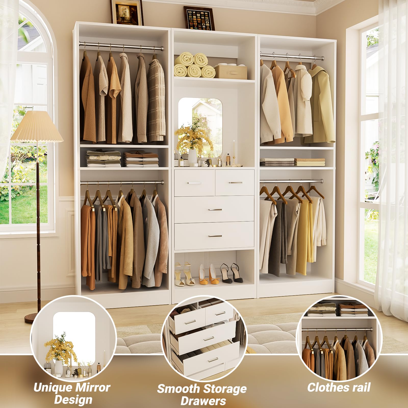 Transform your space with this all-in-one closet system featuring three 25-inch towers that work independently or combine into a luxurious 75-inch storage wall. Perfect for bedrooms, dressing rooms, and living spaces without requiring renovation.