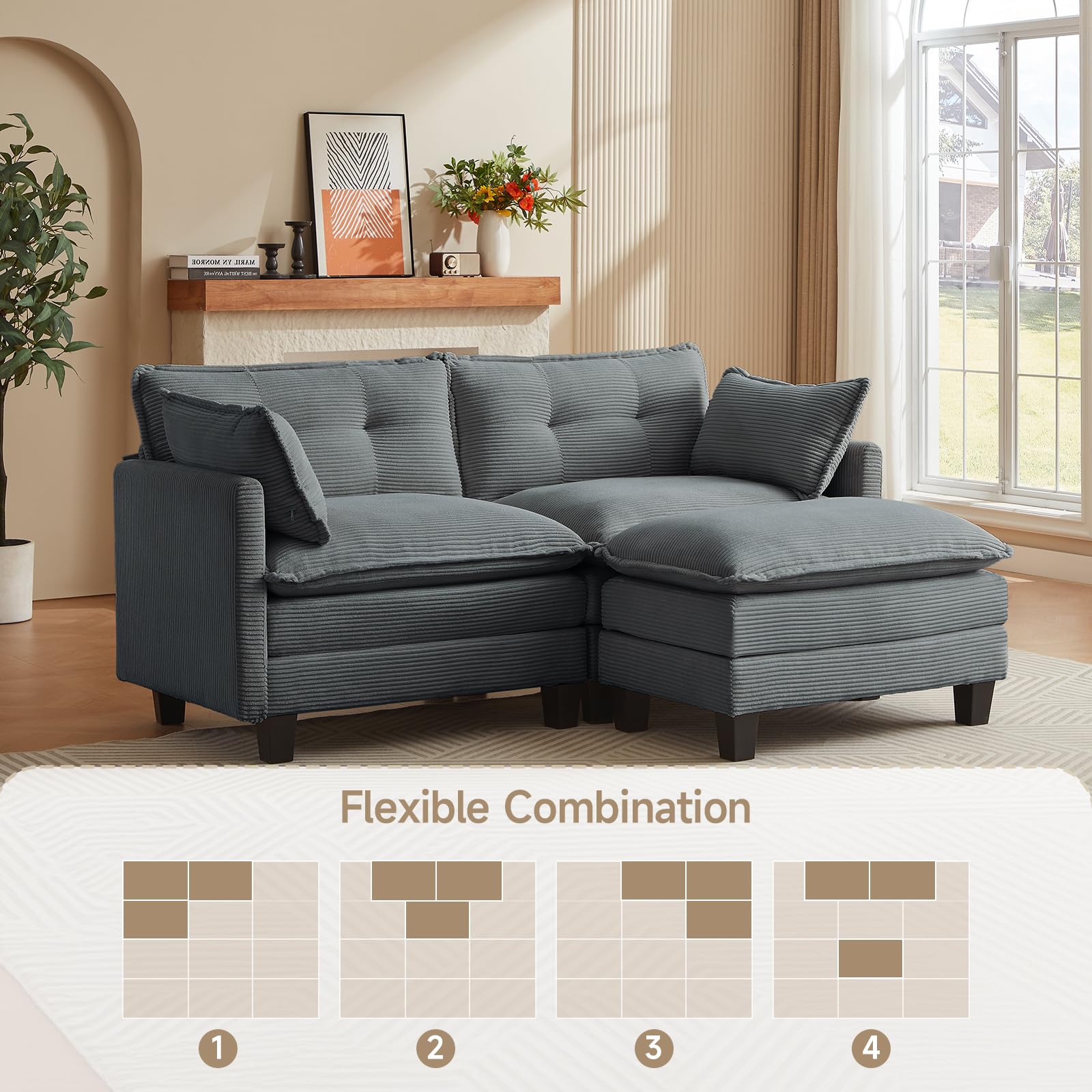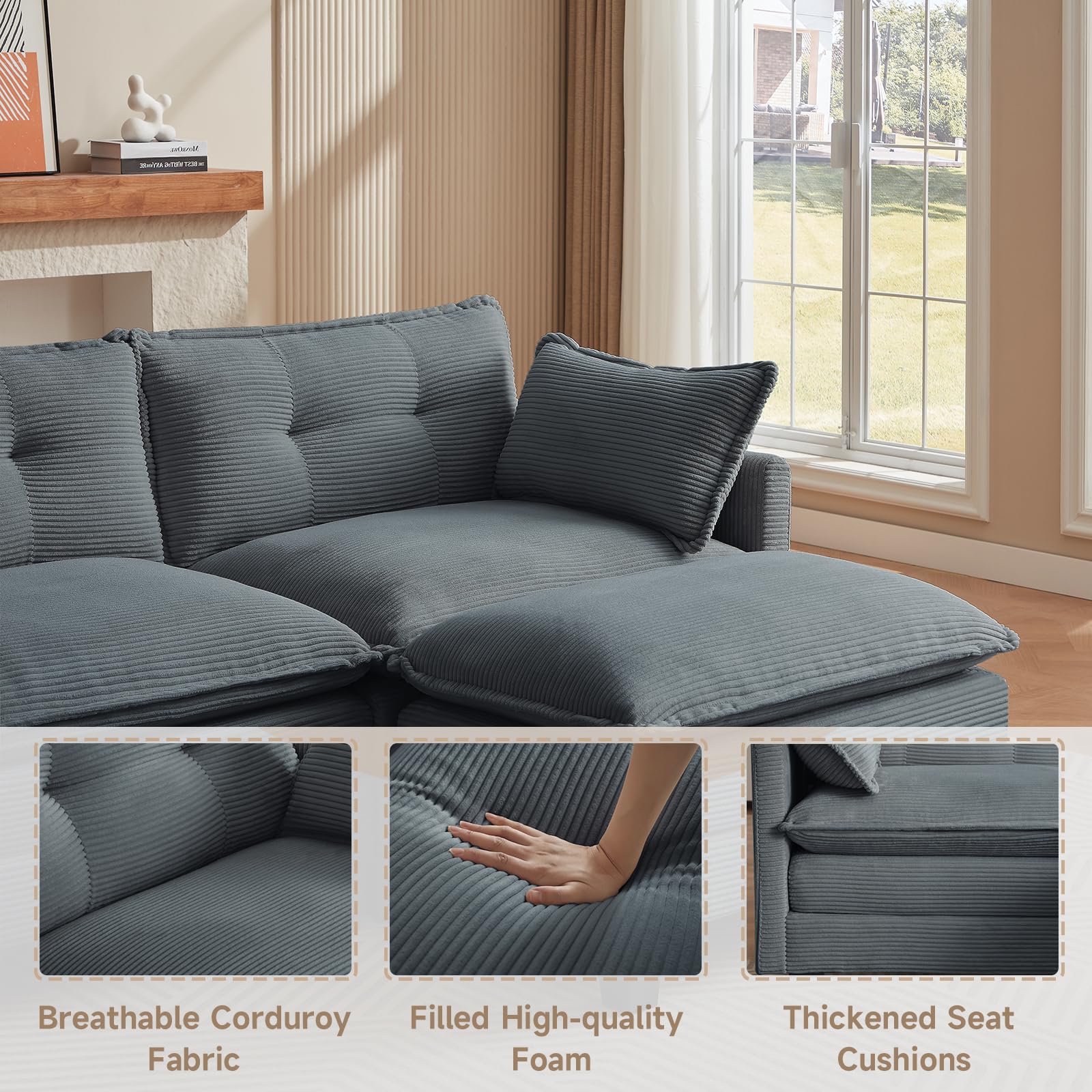 Designed for both style and comfort, this modular sectional sofa is wrapped in luxuriously soft, breathable corduroy fabric and filled with high-density, resilient foam for a truly cloud-like feel. Whether you are watching your favorite show or simply unwinding after a long day, this sofa offers the perfect balance of support and plush comfort. A perfect fit for living rooms, bedrooms, and home offices, its versatile, modern design blends seamlessly with any decor.