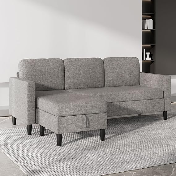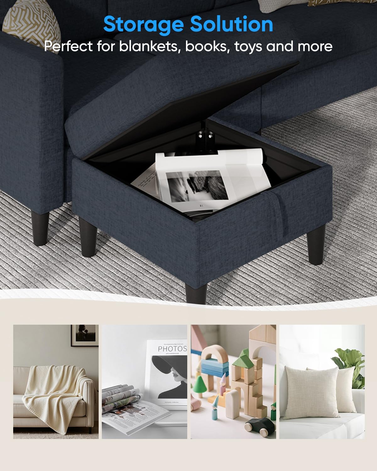 - Versatile Design: Reversible configuration with storage ottoman adapts to your space and storage needs