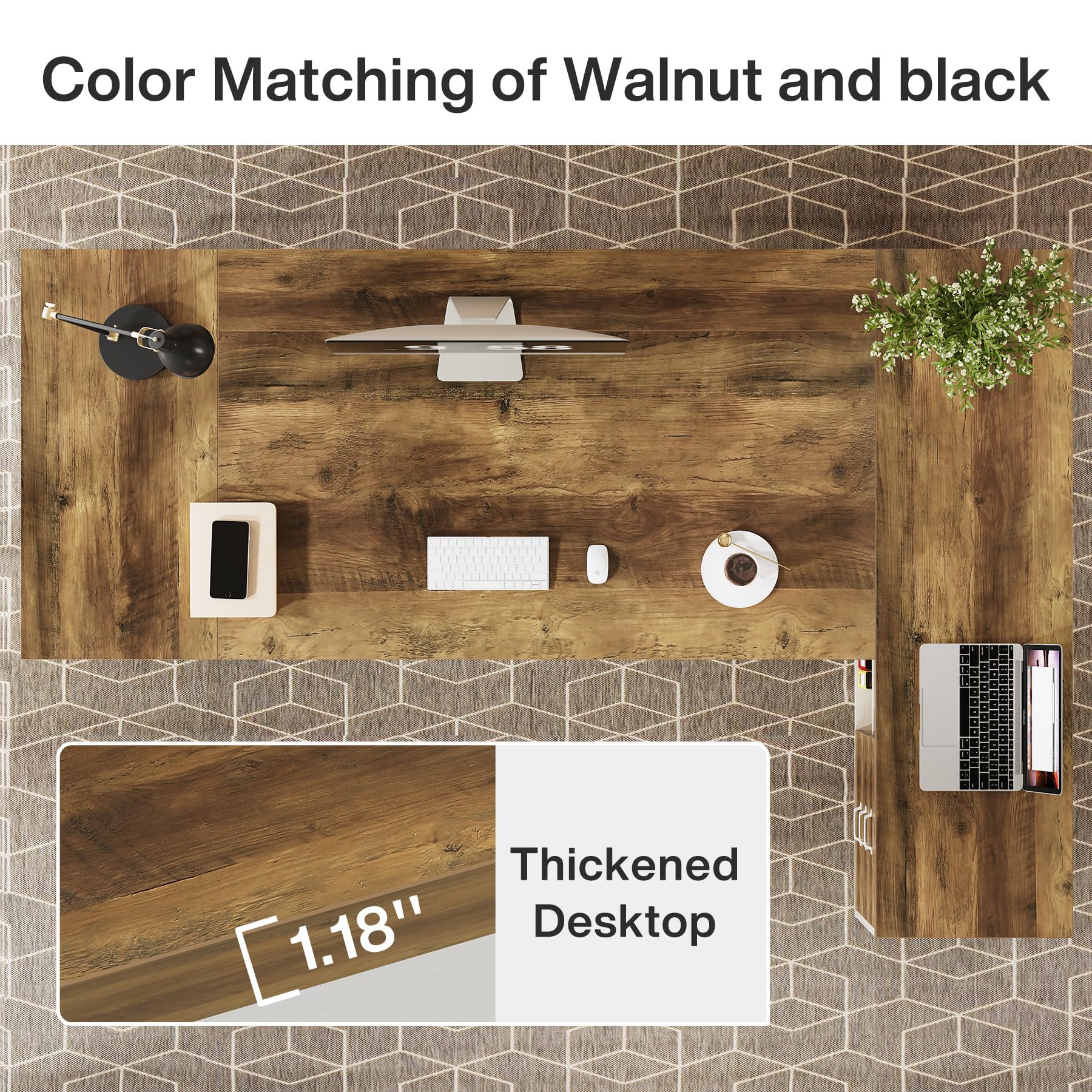 - Expansive L-shaped design maximizes workspace efficiency
