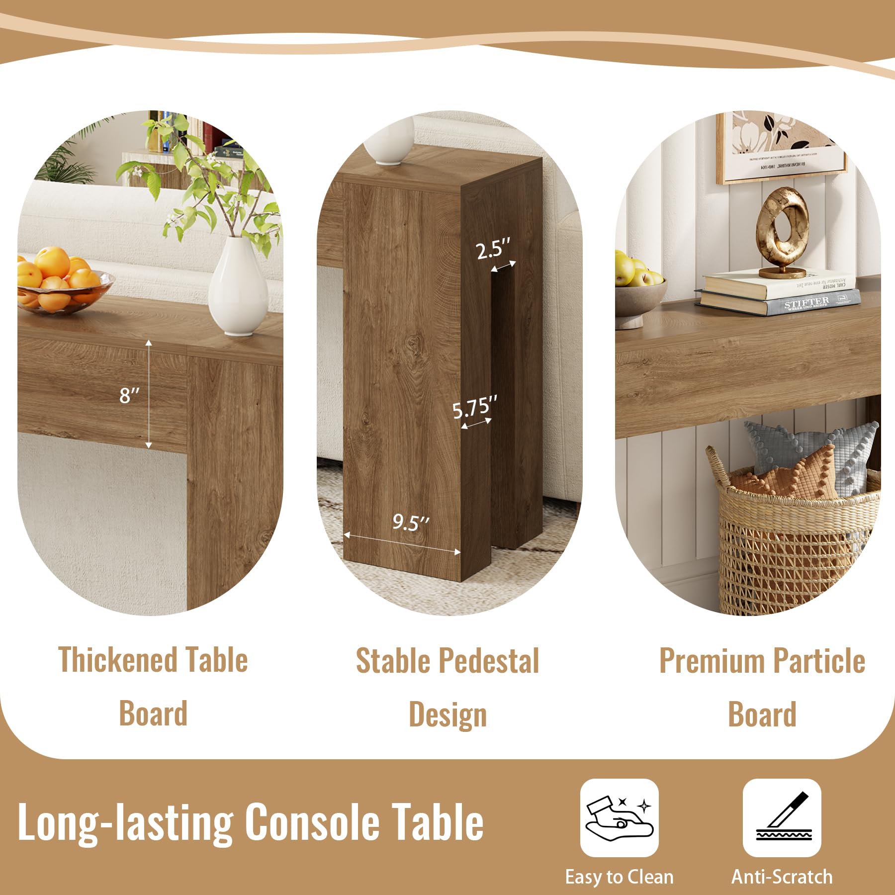 Transform your entryway, living room, or hallway with this extra-long farmhouse console table. Featuring a rectangular design with a wooden double base, this piece combines rustic charm with modern functionality.