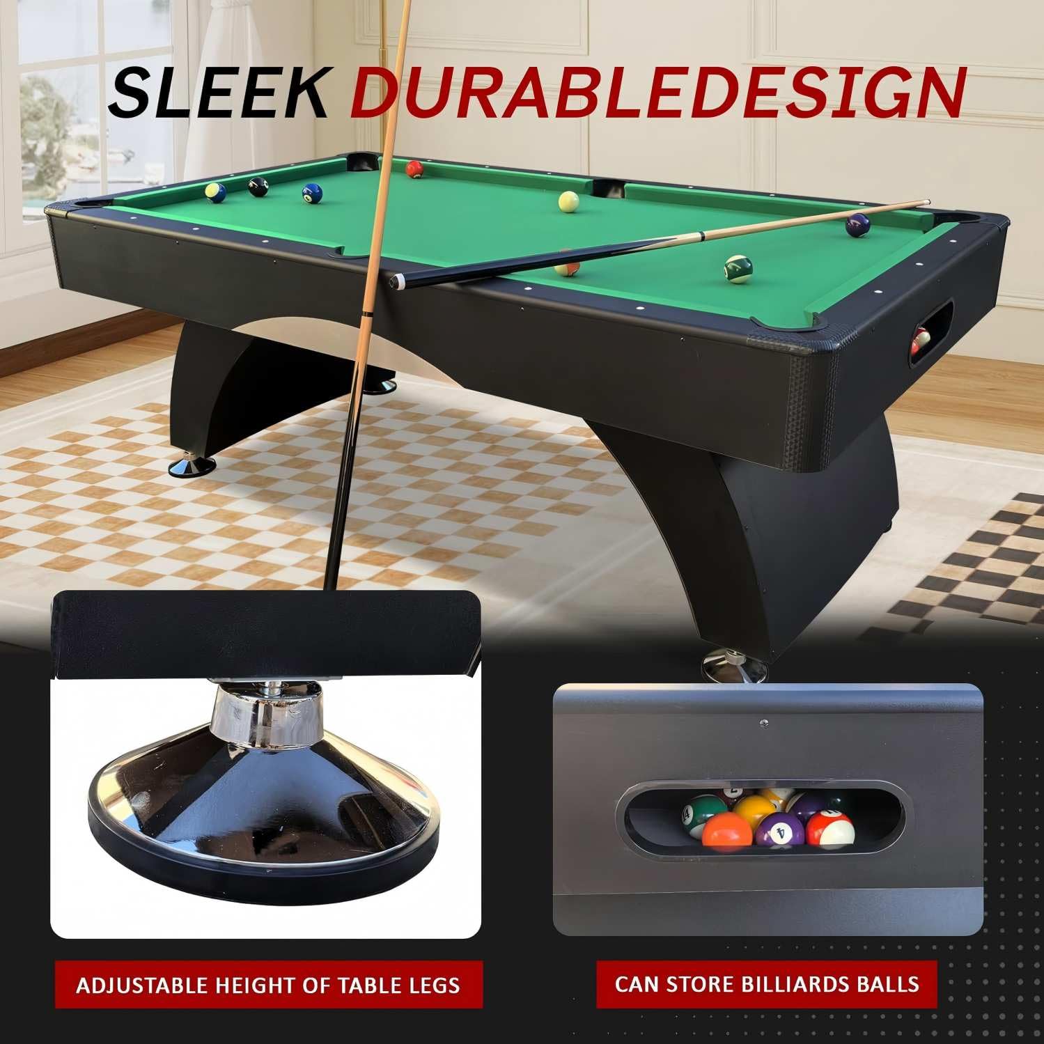 - Automatic Ball Return System: Convenient mechanism collects all pocketed balls into one central location for faster, uninterrupted gameplay