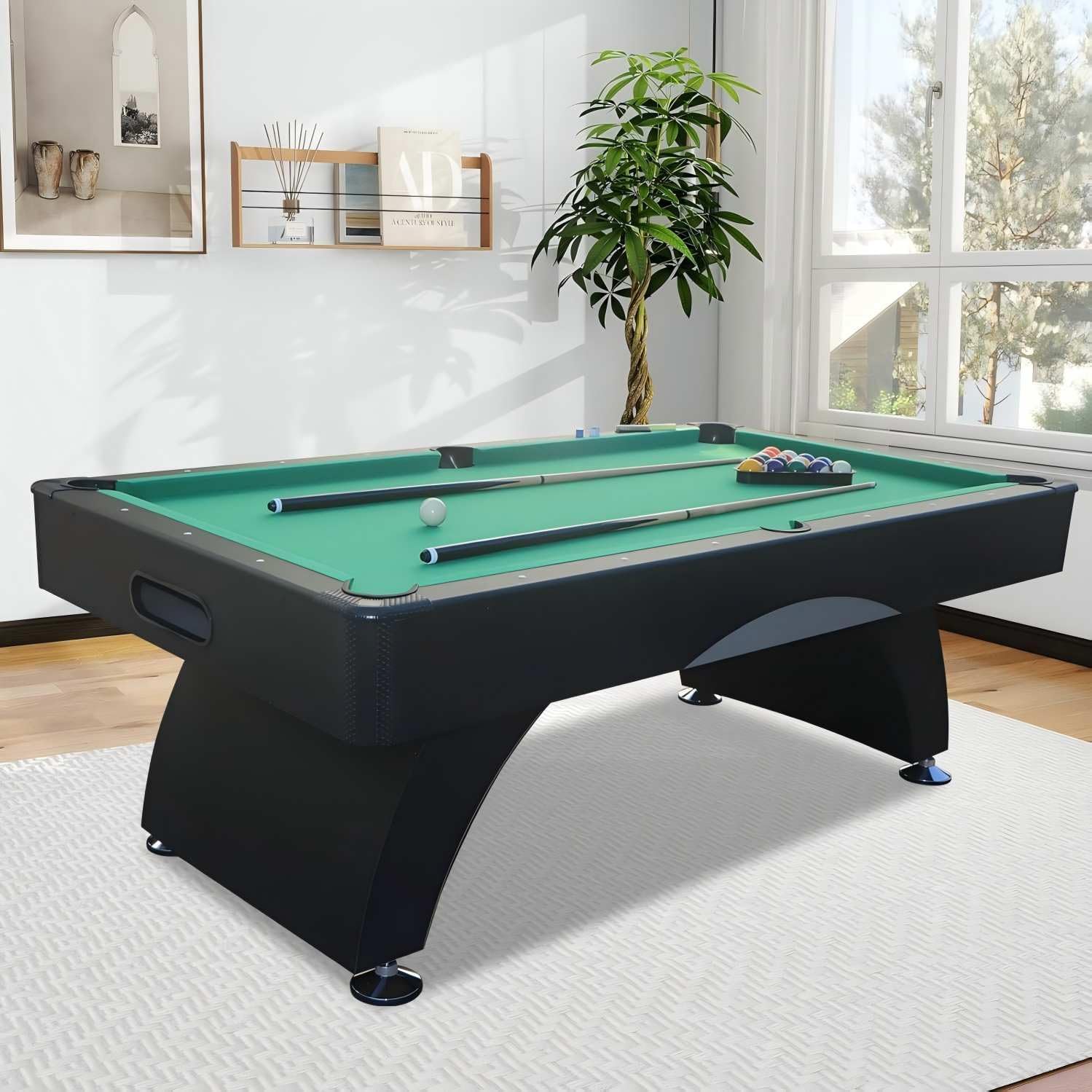 - Complete Accessories: Includes full set of standard billiard balls, 2 pool cues, 2 cue chalks, table brush, and triangle rack