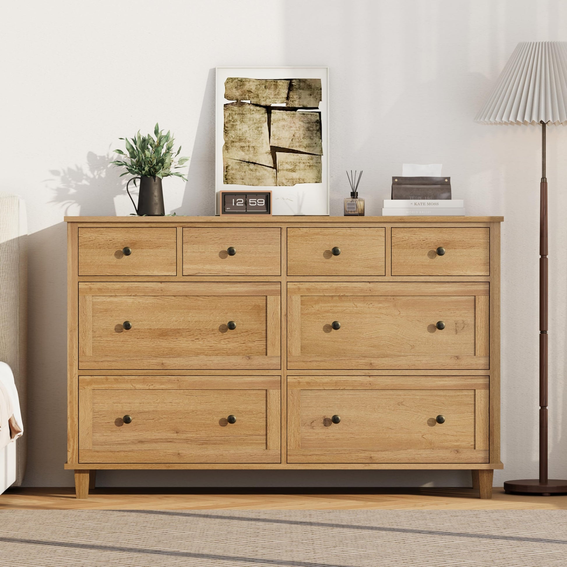 This 8-drawer wood dresser combines functionality with modern design, offering ample storage for bedrooms, living rooms, hallways, or entryways. The natural wood finish complements any décor while providing durable, long-lasting organization.