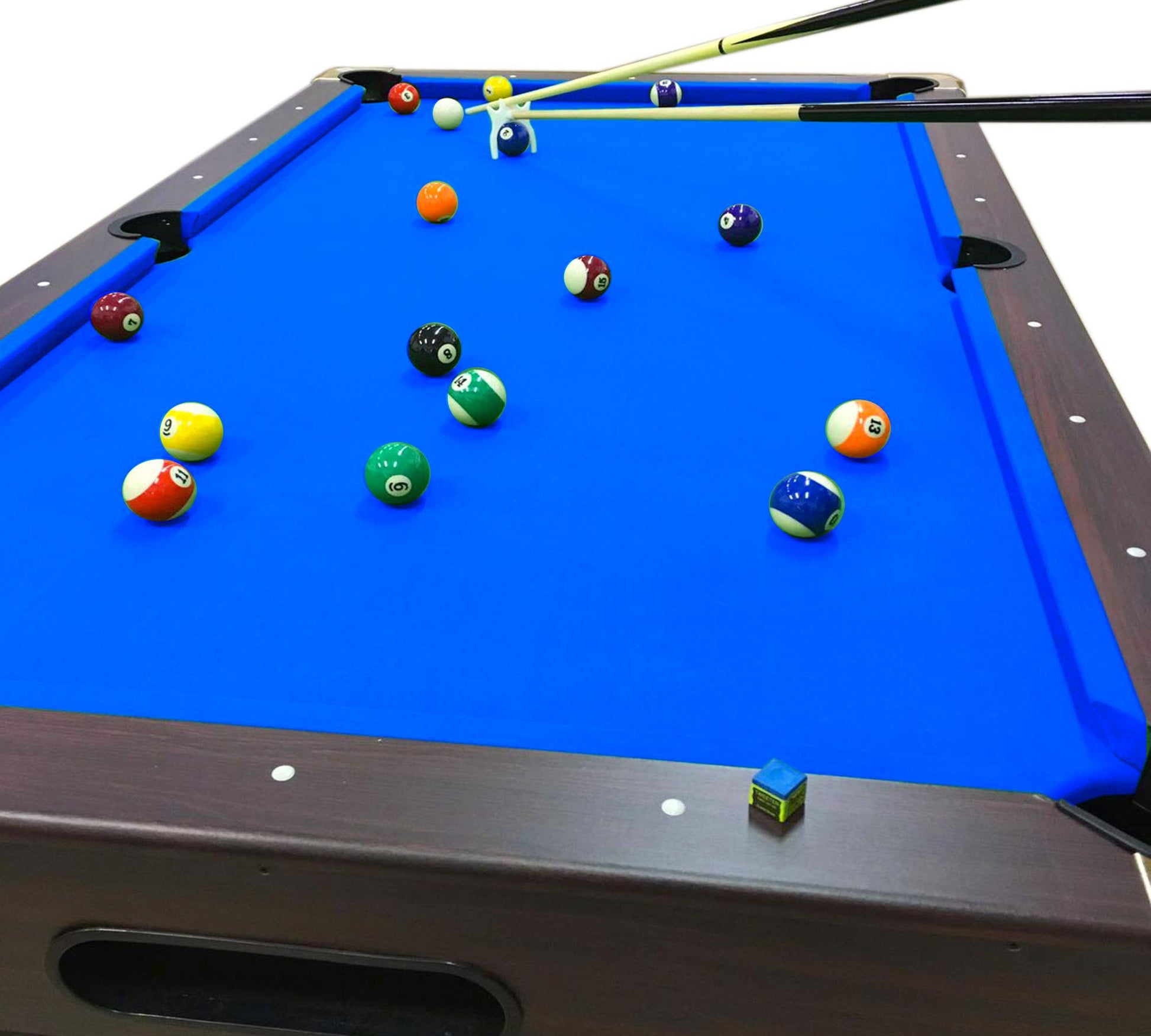 - Full 8-foot regulation playing surface with premium blue felt