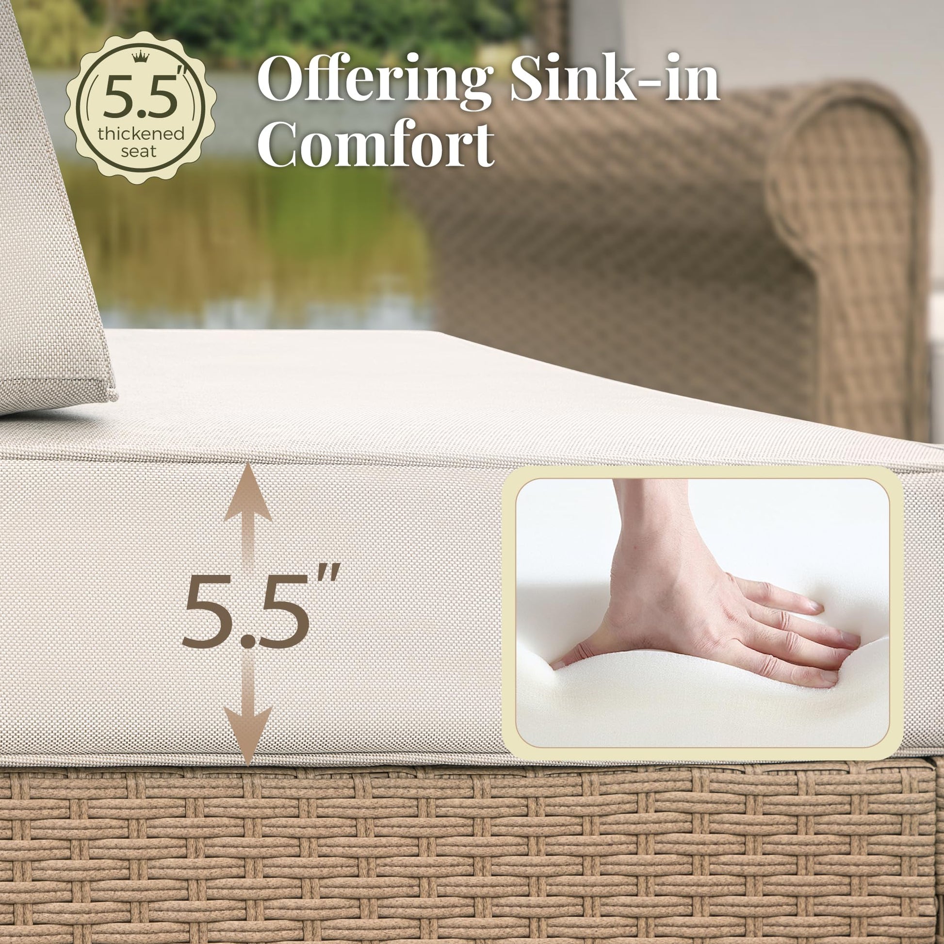 - 5.5-inch thick waterproof cushions