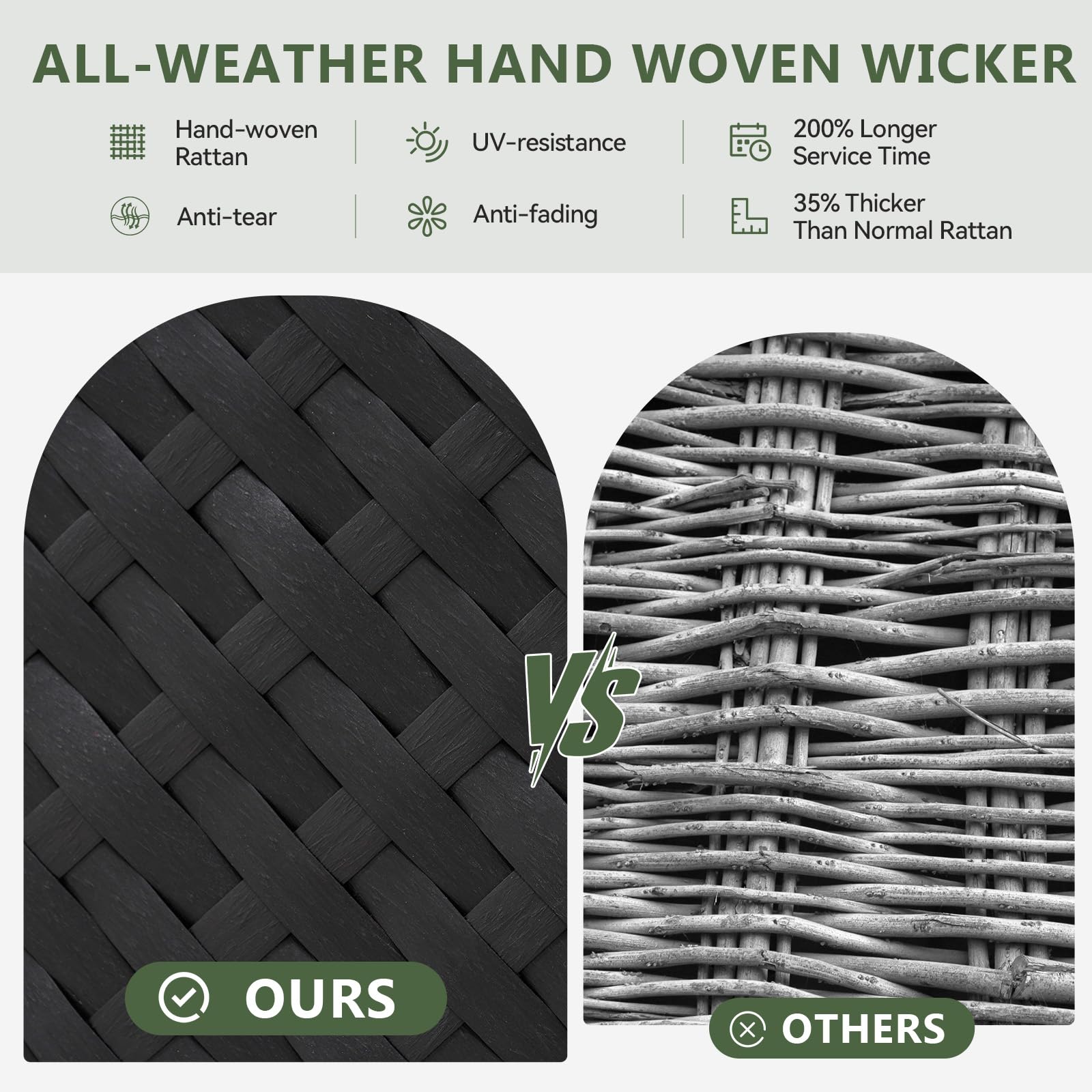 - Commercial-Grade Construction: Powder-coated galvanized steel frames with UV-resistant PVC rattan withstand extreme weather conditions