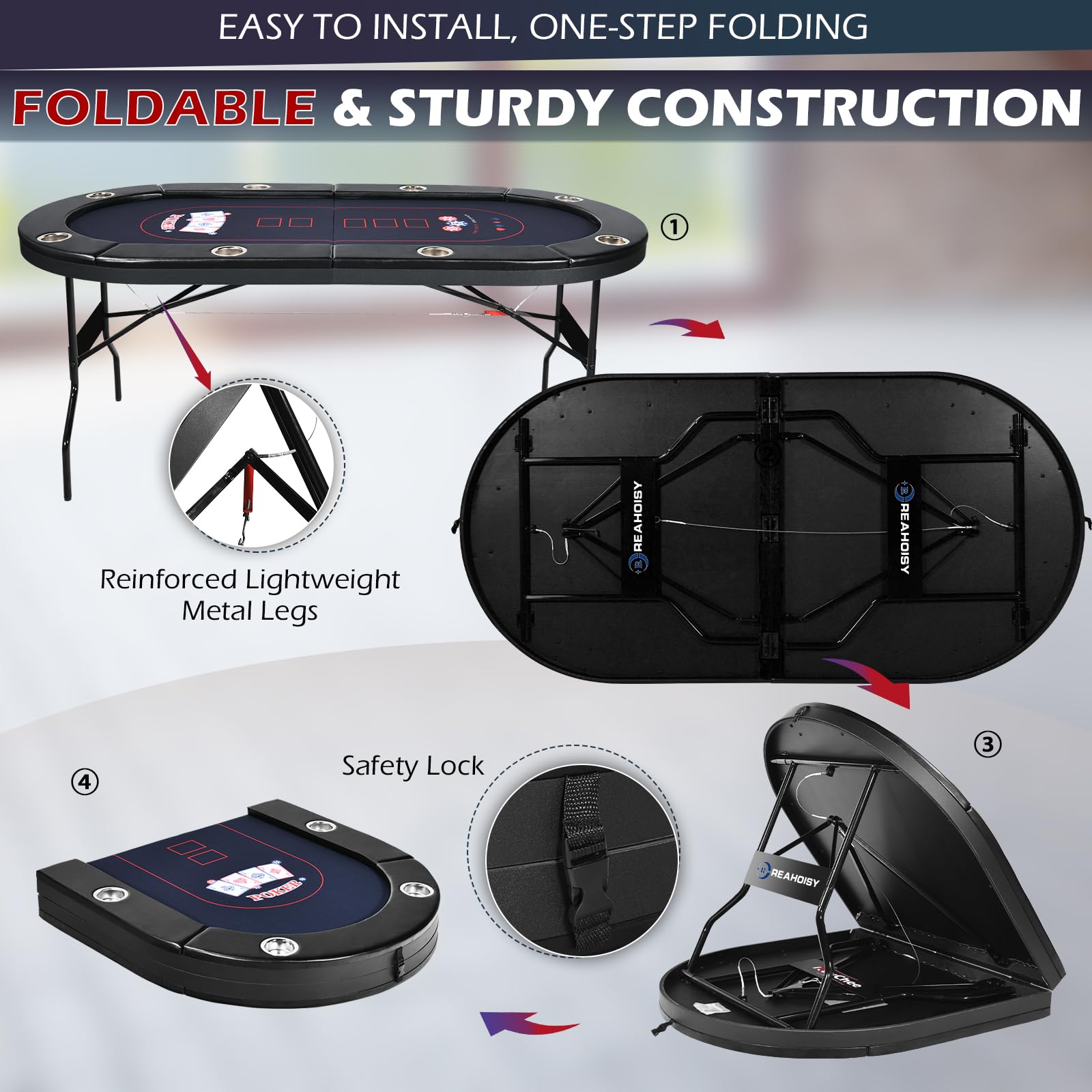 - Accommodates 6-8 players comfortably for blackjack, Texas Hold'em, and other card games