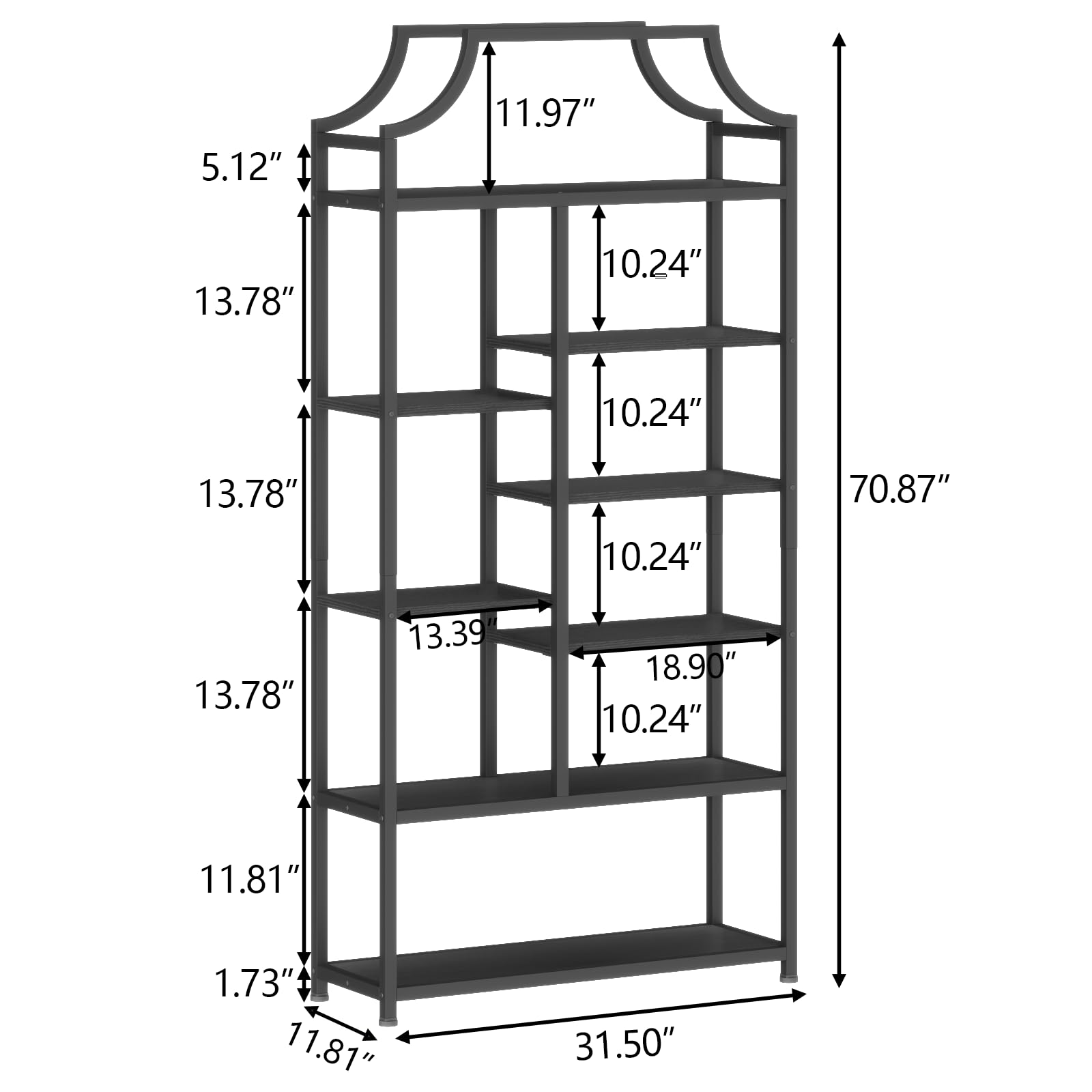 The tall etagere design features eight spacious shelves that offer ample display and storage space for books, decorative items, plants, and personal collections. Each shelf is engineered to support your items securely while maintaining an open, airy appearance that prevents your space from feeling cluttered.