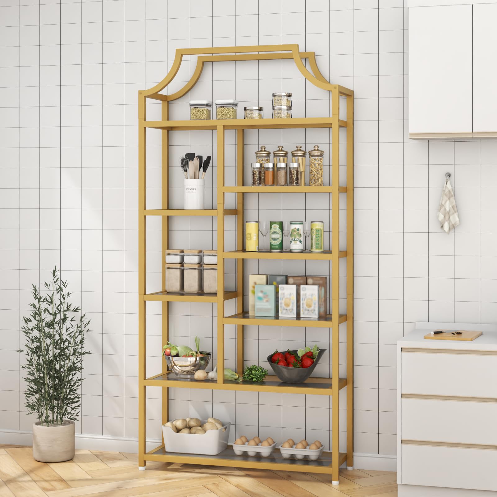 8-Tier Tempered Glass Bookshelf - Gold Metal Frame Etagere
