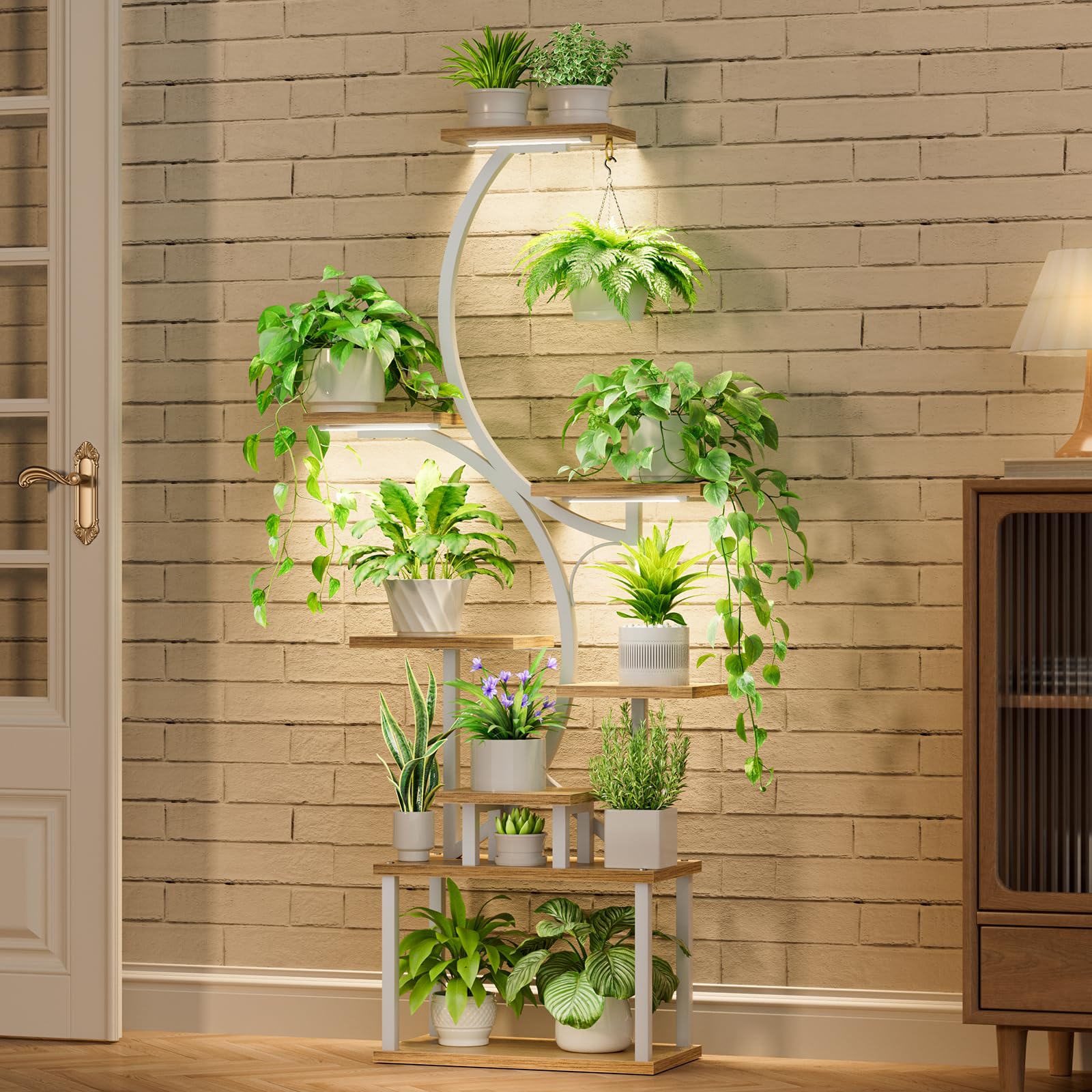 This 62-inch tall metal plant stand features an elegant S-shaped design that maximizes vertical space while providing optimal growing conditions for multiple plants. The integrated grow lights ensure your indoor plants receive adequate illumination year-round.
