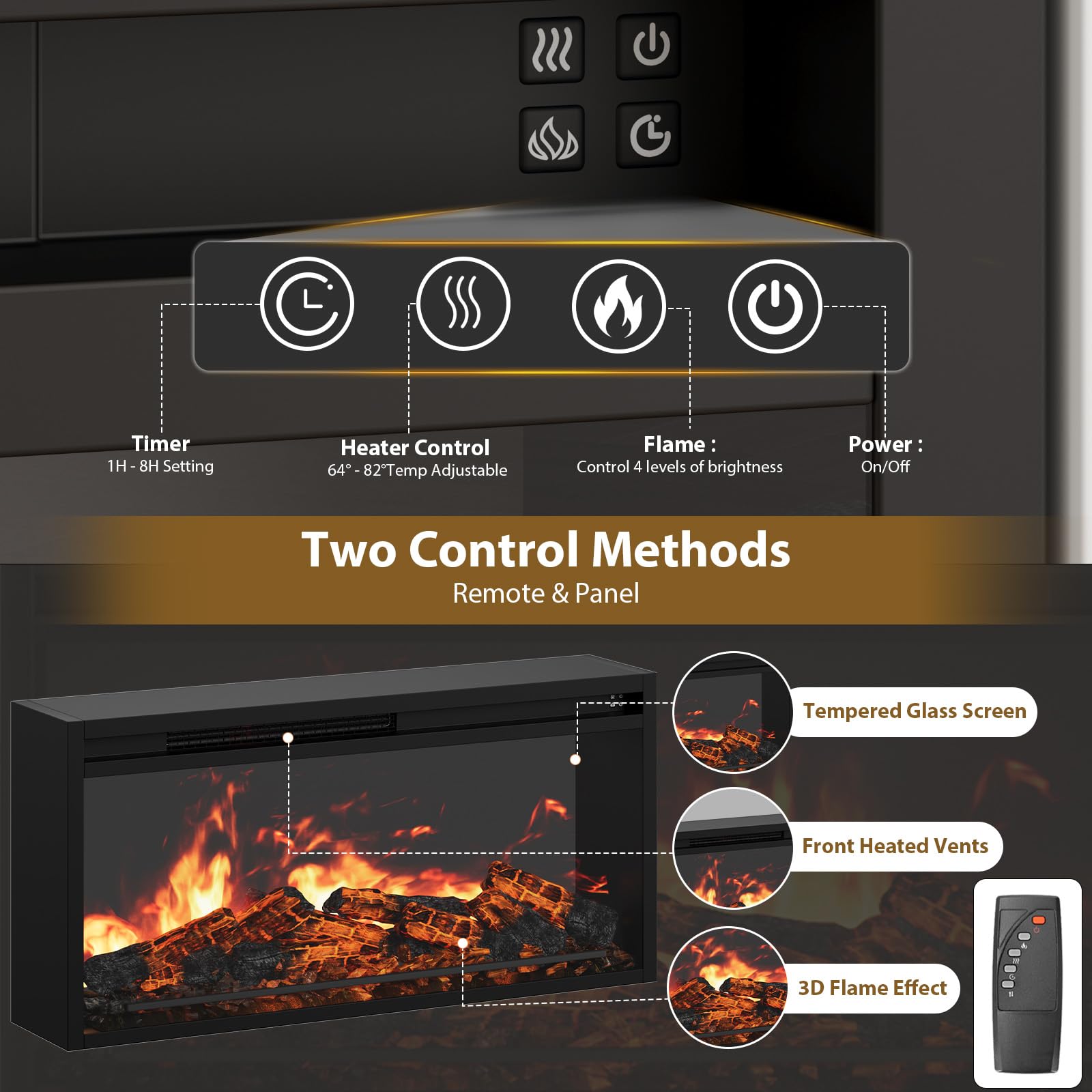 - 30" electric fireplace insert with realistic flame effects