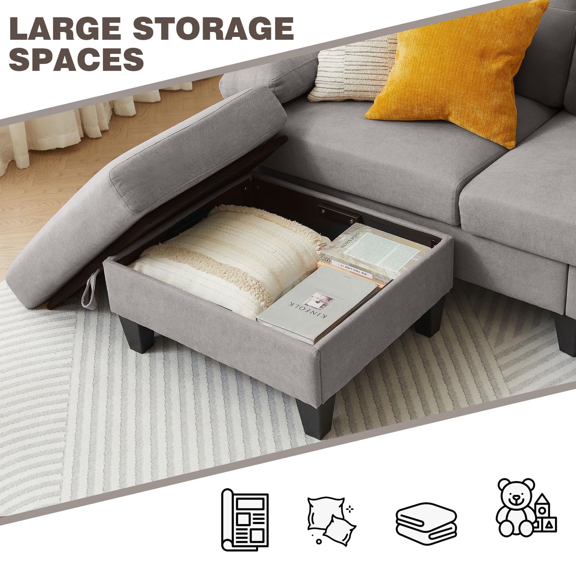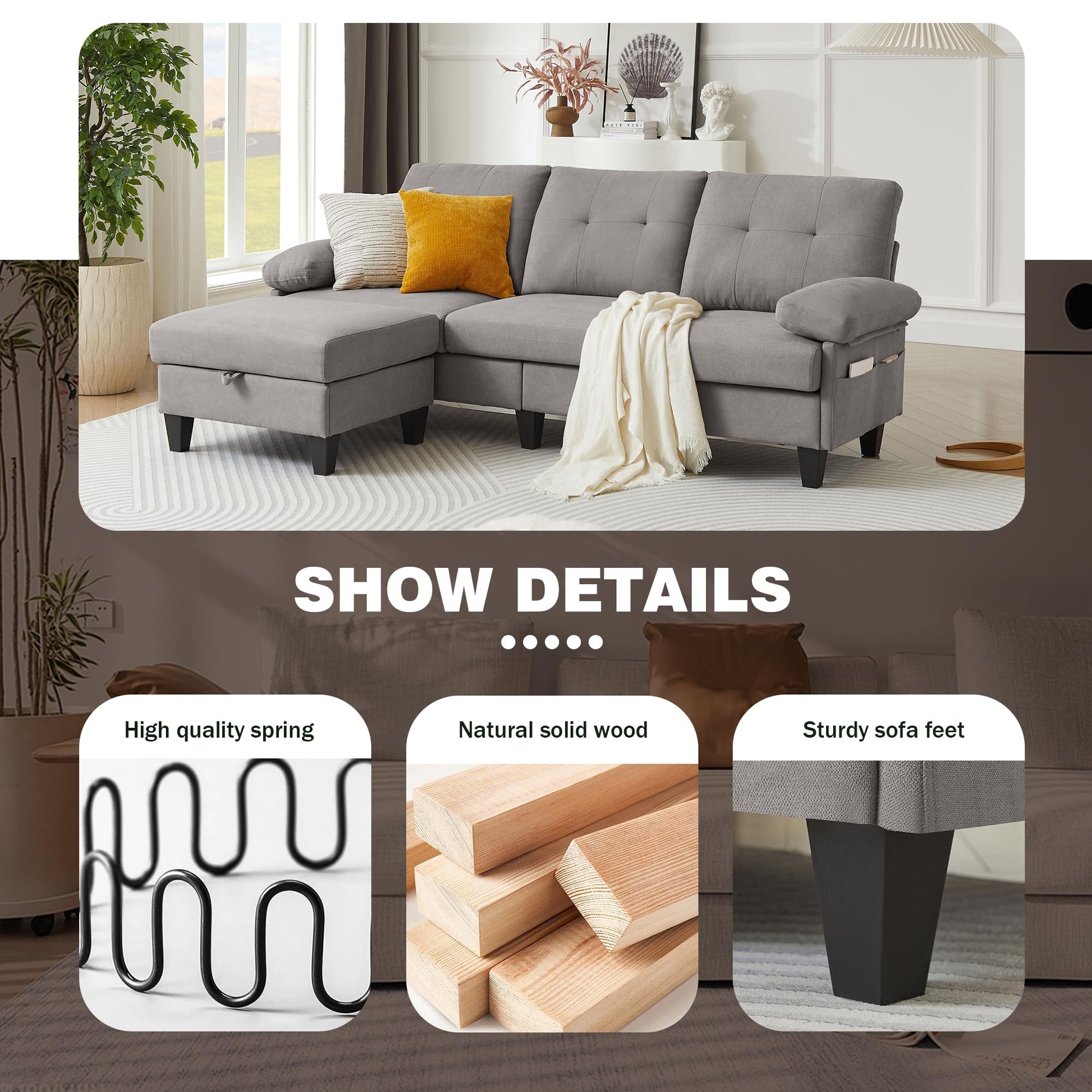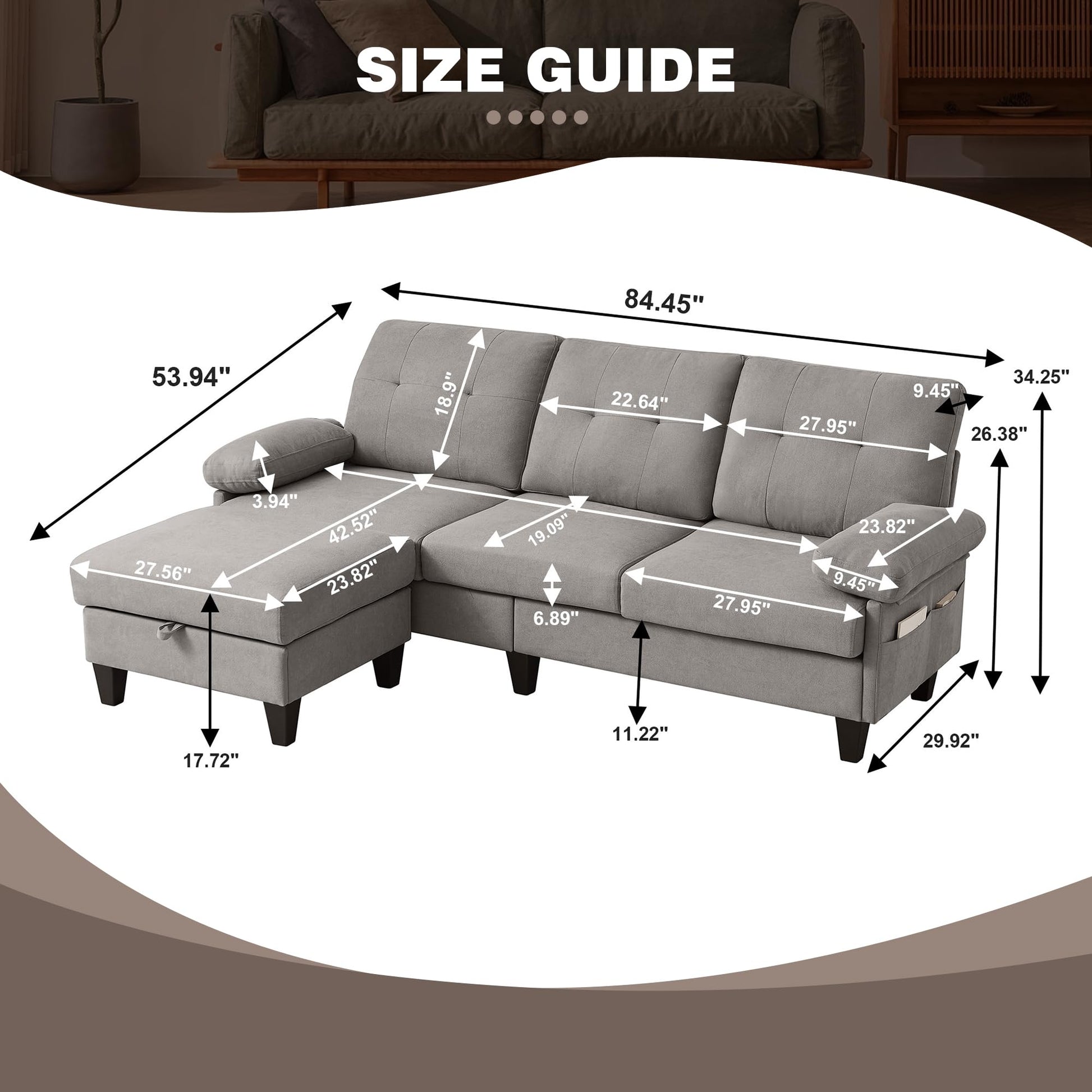Transform your living space with this versatile convertible sectional sofa featuring a reversible chaise for flexible room arrangements. Upholstered in premium linen fabric with a sophisticated light grey finish, this 3-seat sofa combines modern design with exceptional comfort.