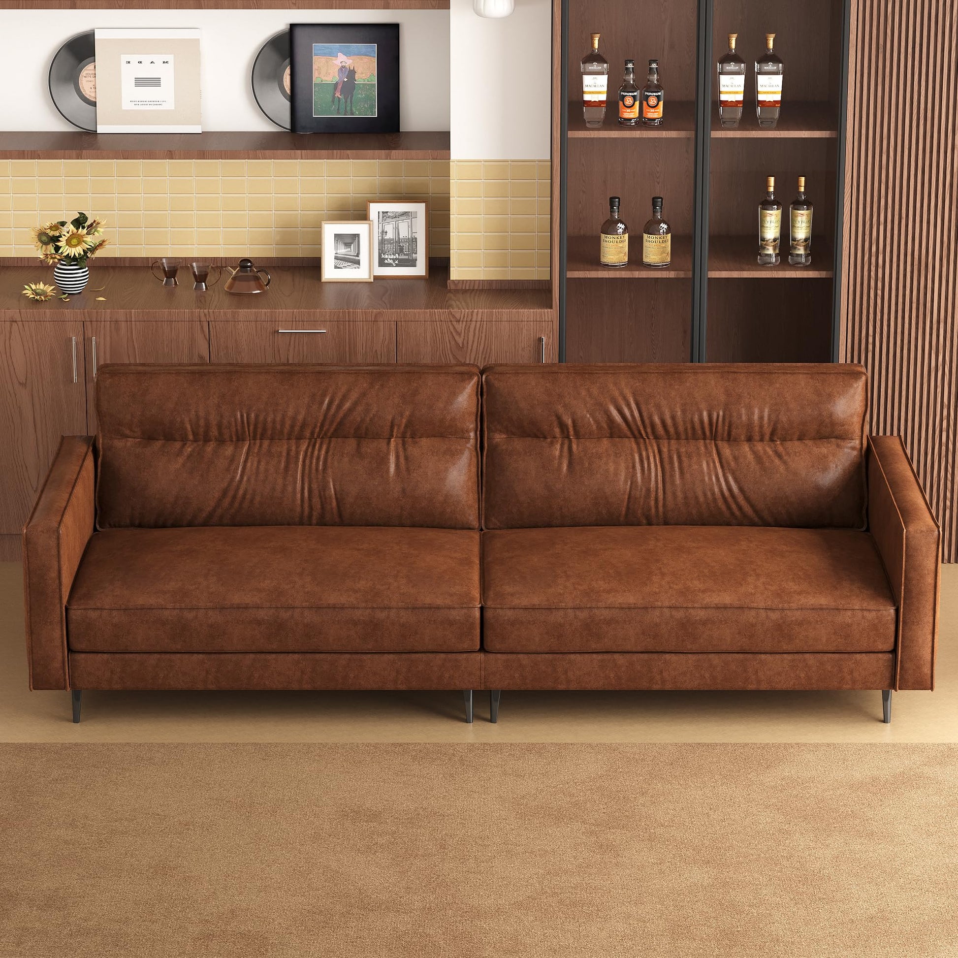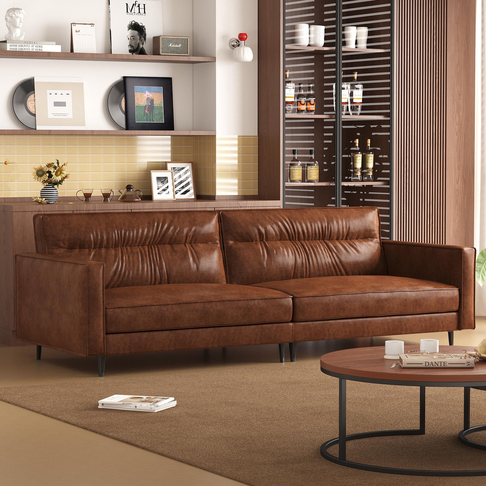 - 【Vintage Mid-Century Style with Superior Comfort】Blending retro aesthetics with modern lounging comfort, this sofa provides supportive seating through its high-density foam cushions on the seat, backrest, and armrests. The refined stitching and plush leather surface make it an eye-catching centerpiece in any living room or office.