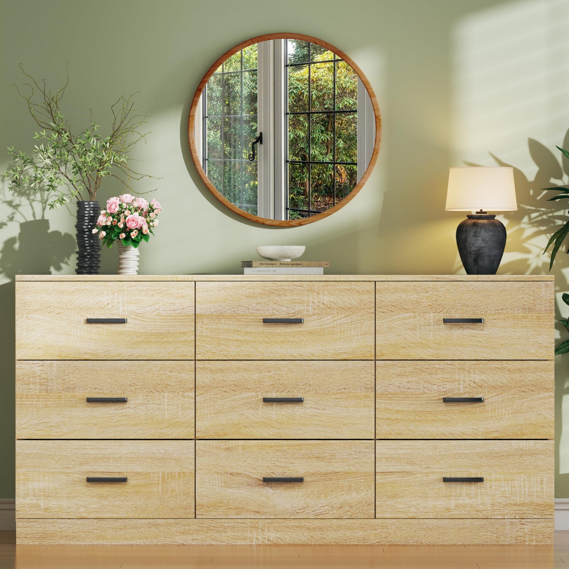 This spacious 9-drawer dresser combines vintage charm with modern functionality, offering ample storage for your bedroom, closet, or entryway. Crafted from natural oak wood, this versatile piece doubles as a stylish TV stand while providing organized storage for clothing, linens, and accessories.