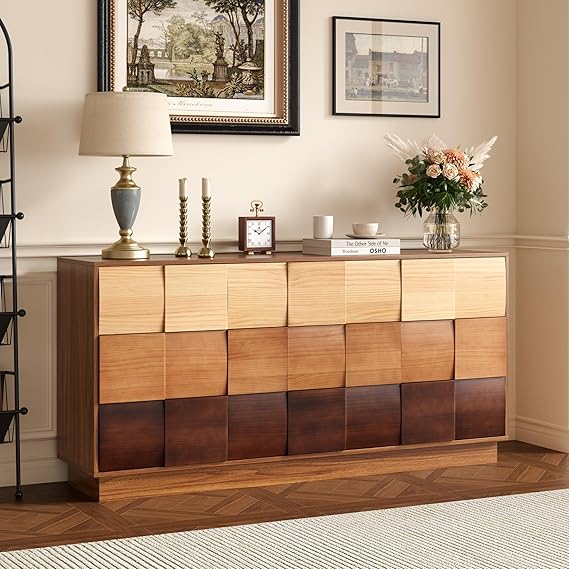 This dresser is perfect for bedrooms requiring substantial storage, living rooms needing organized display space, or any room where modern design meets practical functionality.
