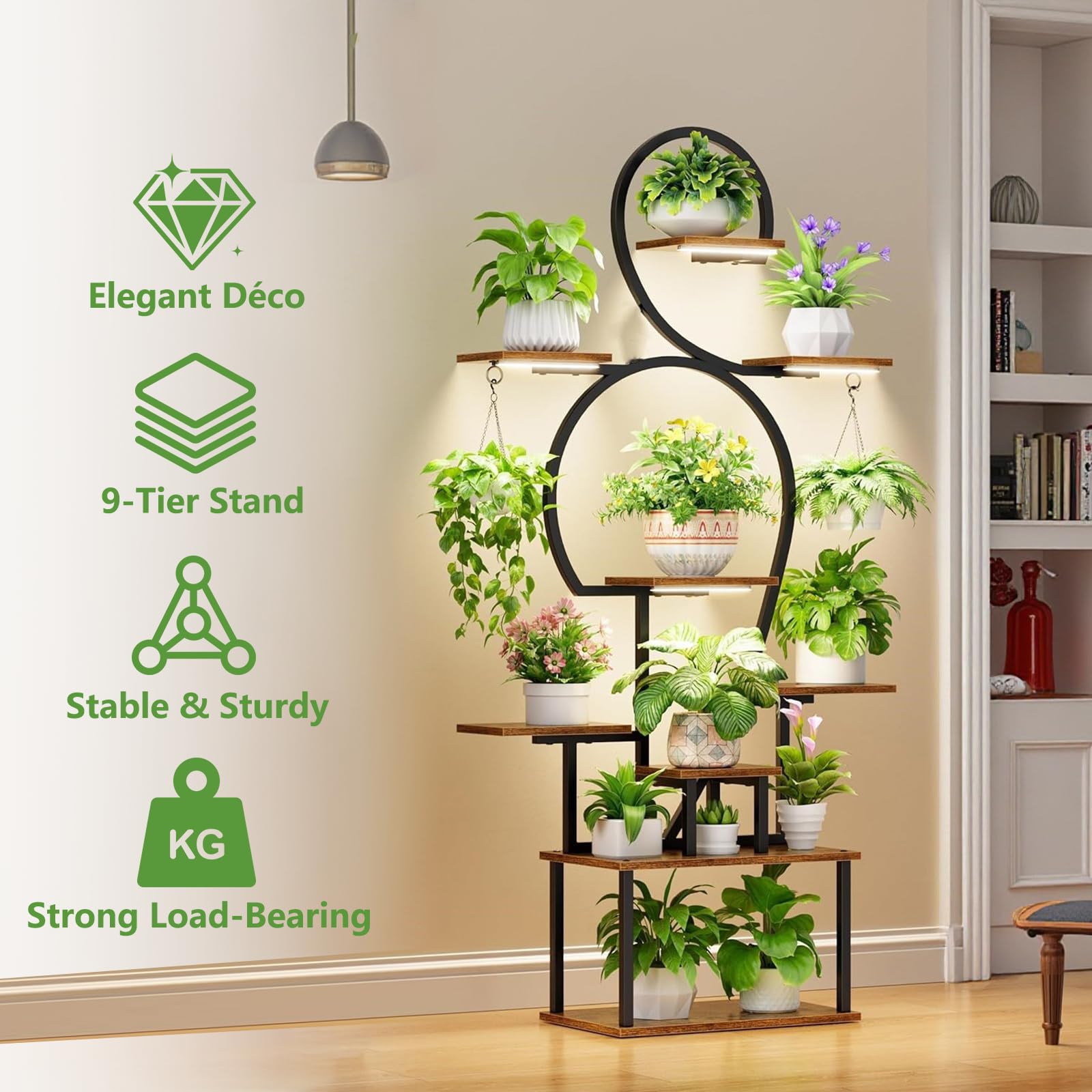 9-Tier Indoor Plant Stand with Full-Spectrum Grow Lights