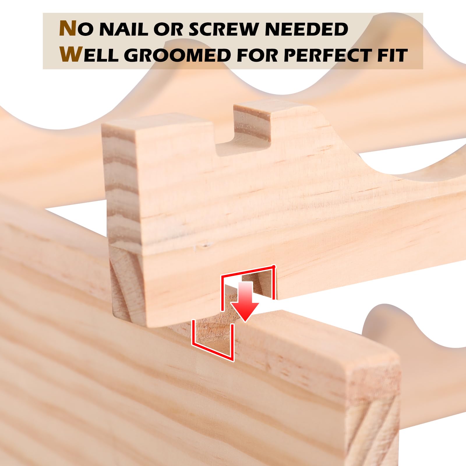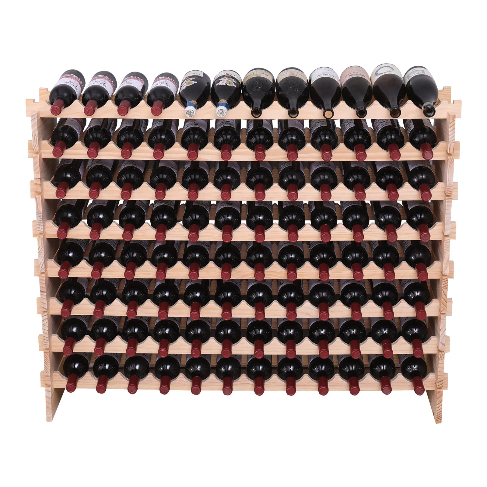This modern floor-standing wine rack offers elegant storage for up to 96 bottles. Crafted from high-quality pine wood with a smooth finish, this stackable modular design provides sturdy, reliable wine storage without the need for nails or screws during assembly.