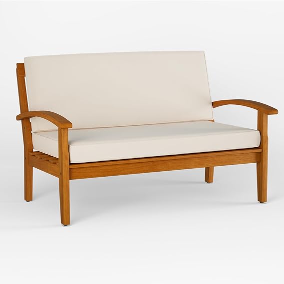 This acacia wood patio furniture is simple to maintain and built to last. For optimal longevity, move the loveseat indoors or cover when not in use during harsh weather conditions.