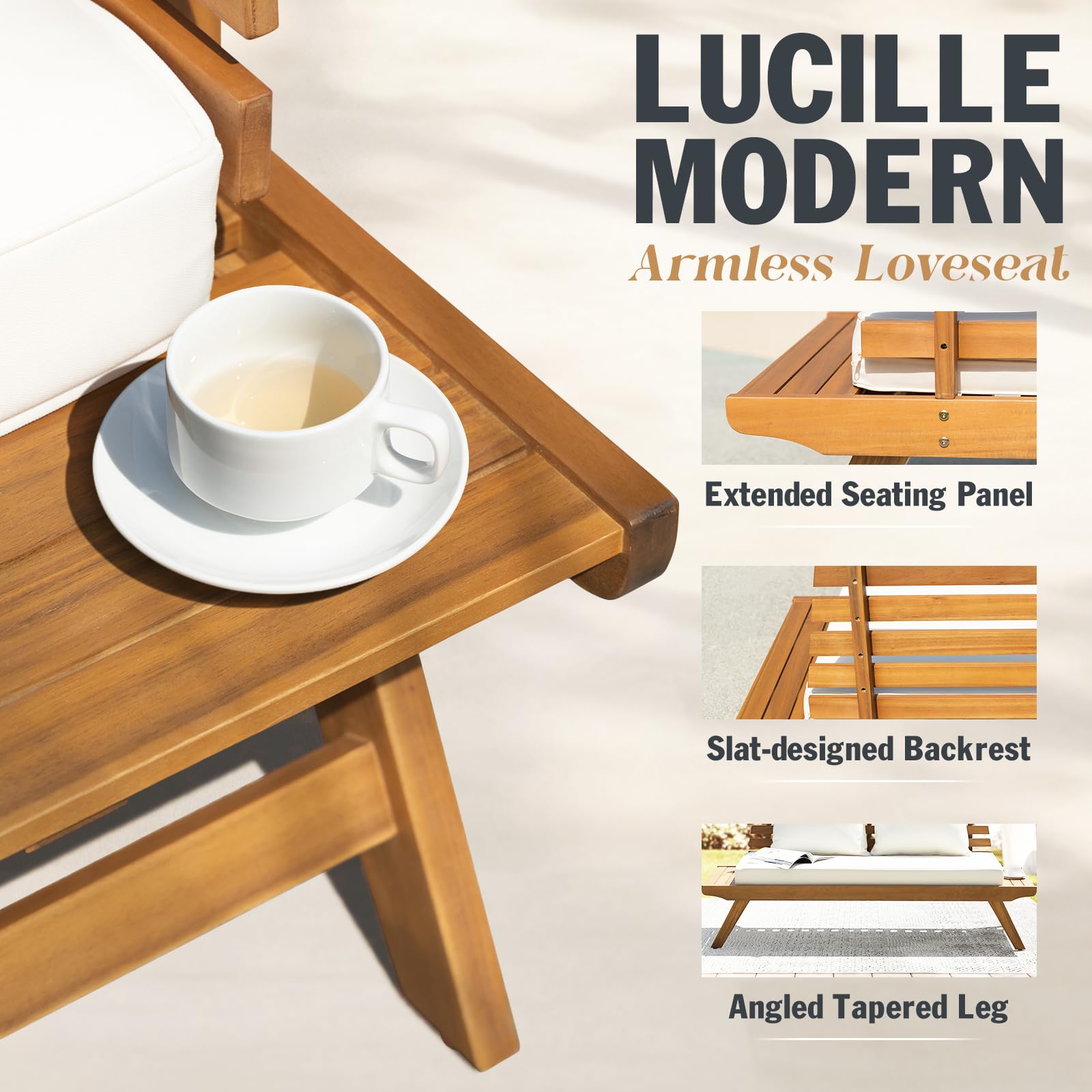 Acacia Patio Loveseat - 800lbs Capacity FSC Certified 2 Seater Outdoor Sofa