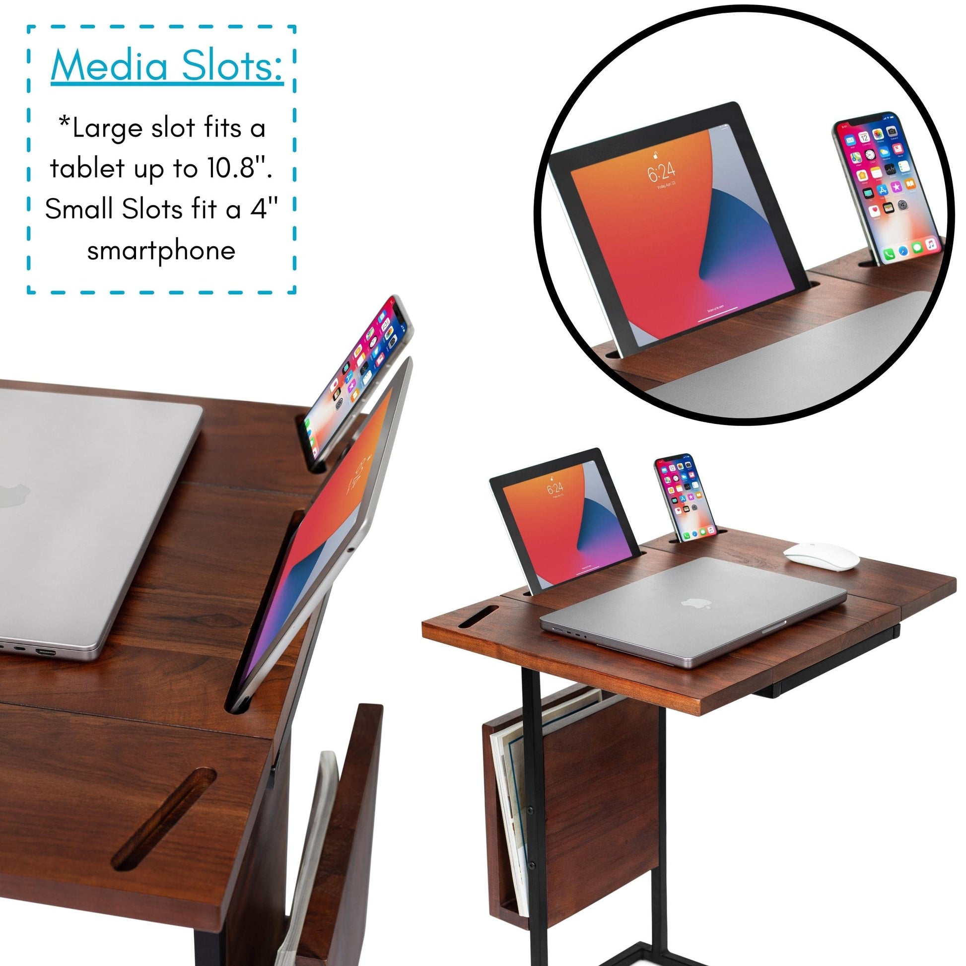 - Work From Home Solution: Perfect lap tray accommodates 13" or 15" laptops with ample mouse space, dedicated tablet slot (fits up to 10.8"), smartphone holder (up to 4"), built-in storage drawer, and comfortable mouse pad