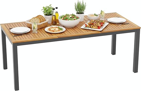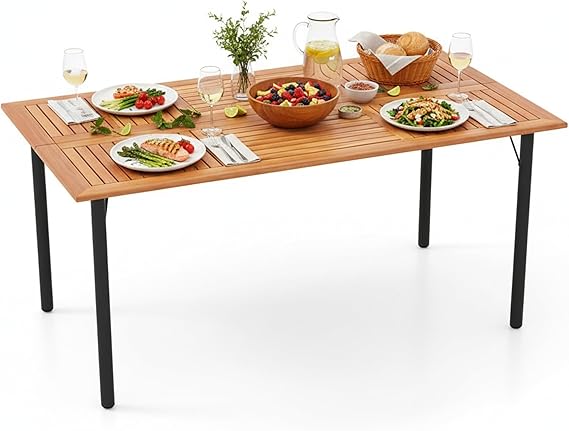 Enjoy outdoor dining with family and friends at this spacious rectangular dining table. The 63" x 36" surface comfortably accommodates up to 6 people, making it perfect for backyard gatherings, poolside meals, or indoor dining rooms.