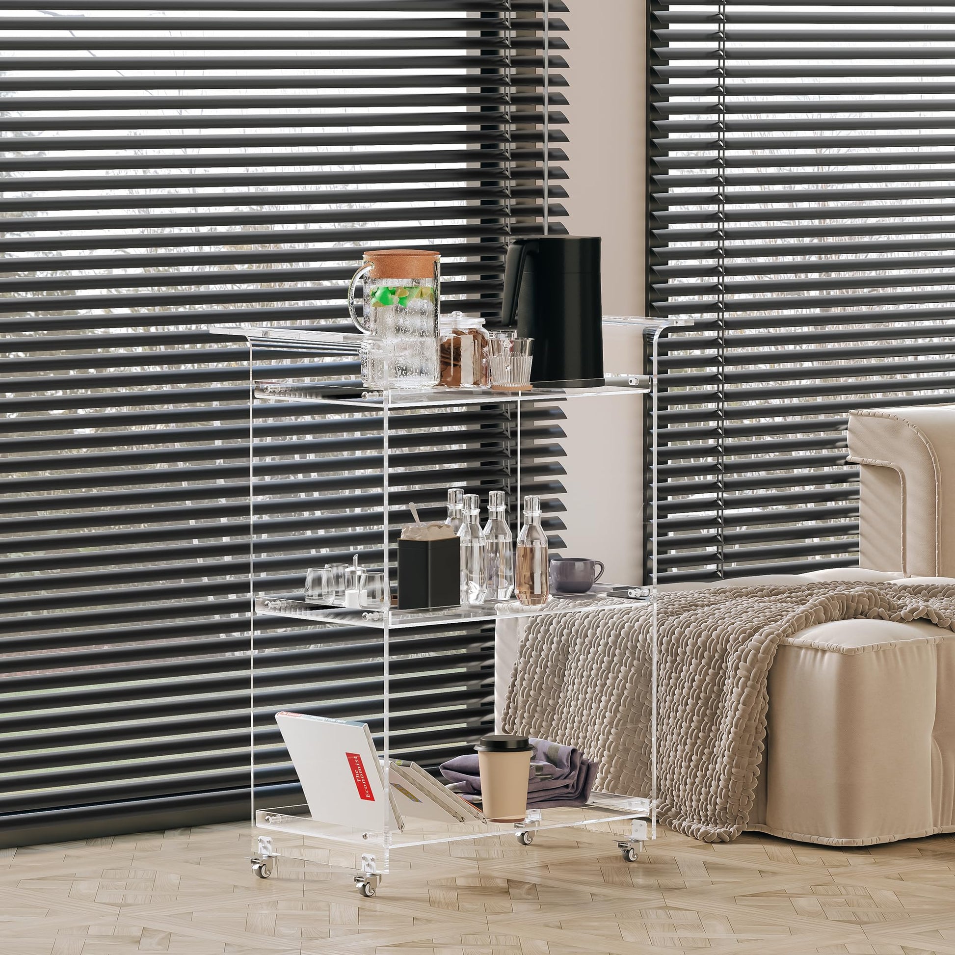 Acrylic Bar Cart 3-Tier Rolling Serving Cart with Lockable Wheels