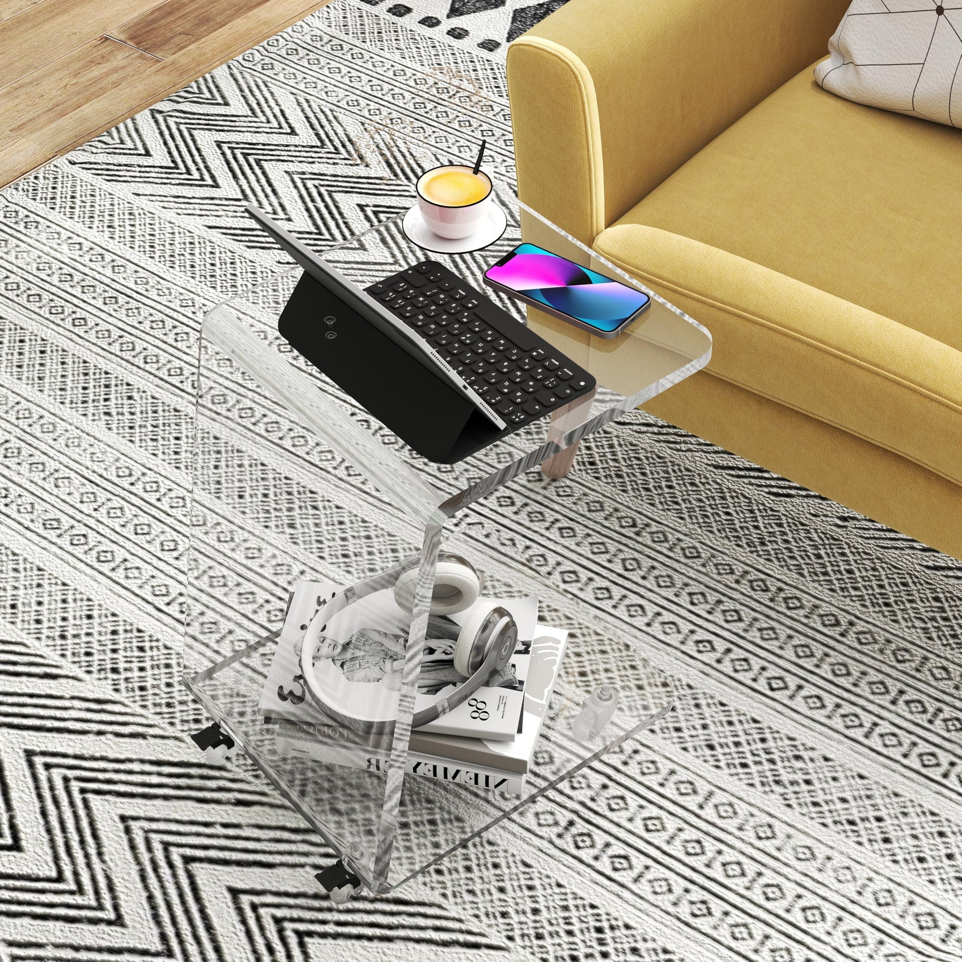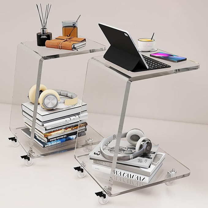 Acrylic C-Shaped Side Table with Wheels