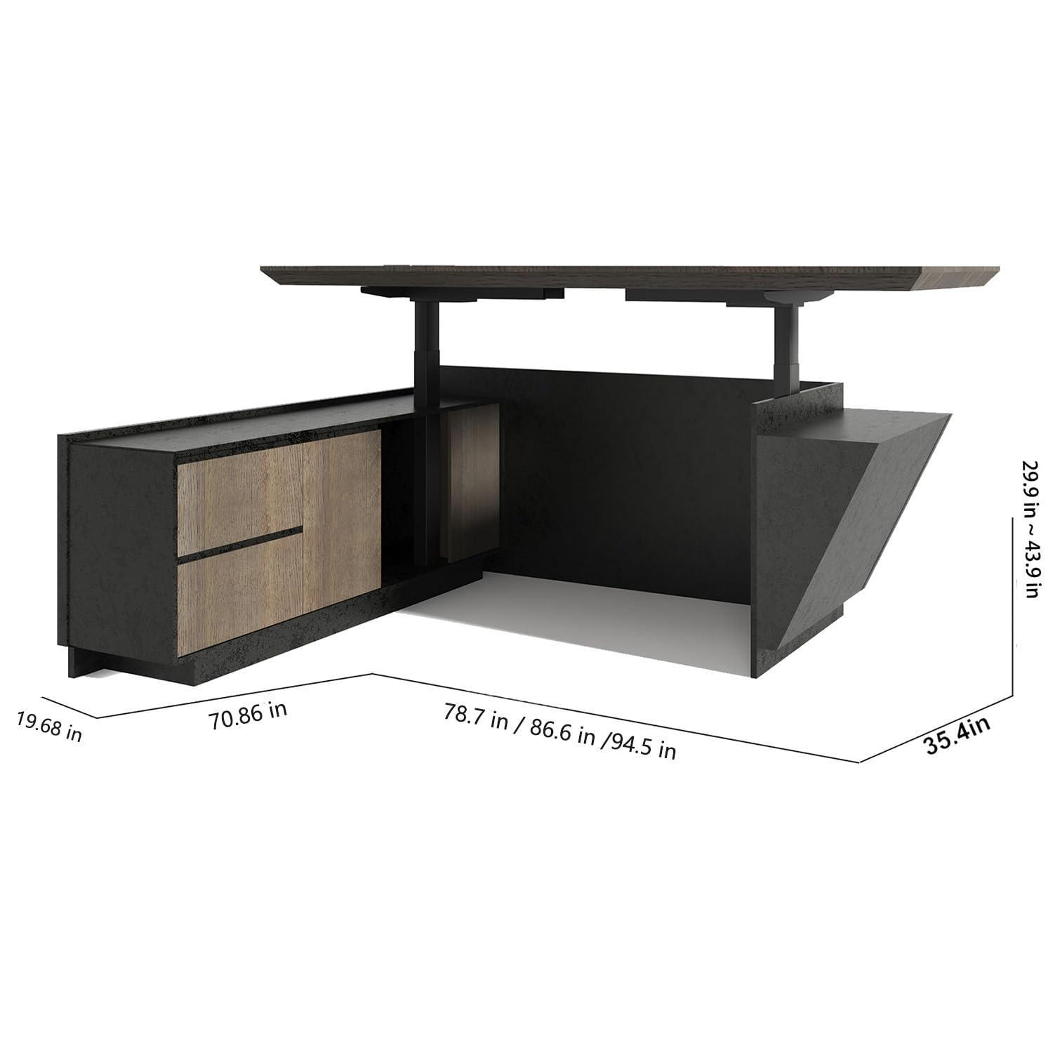 Transform your workspace with this premium executive L-shaped desk featuring height adjustment capabilities and integrated LED ambient lighting. Designed for professionals who demand both functionality and style, this desk combines spacious work surfaces with smart storage solutions.