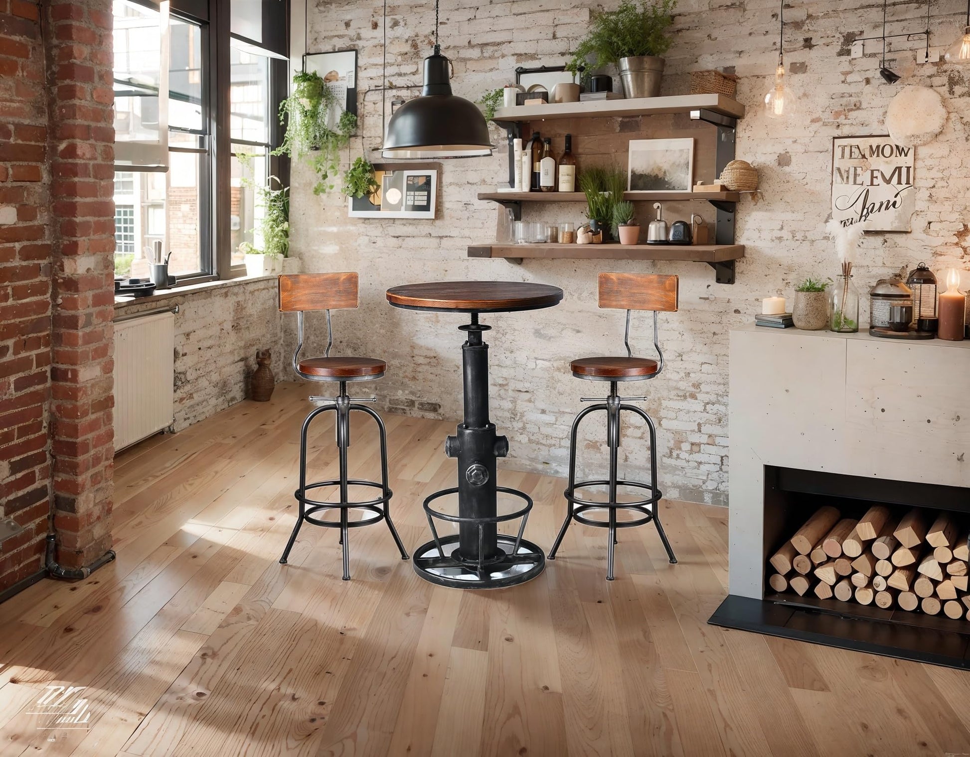 Transform your space with this versatile industrial-style bar table set featuring a unique fire hydrant design. The set includes one height-adjustable round bar table and two matching backrest stools, perfect for creating an entertainment corner in your home.