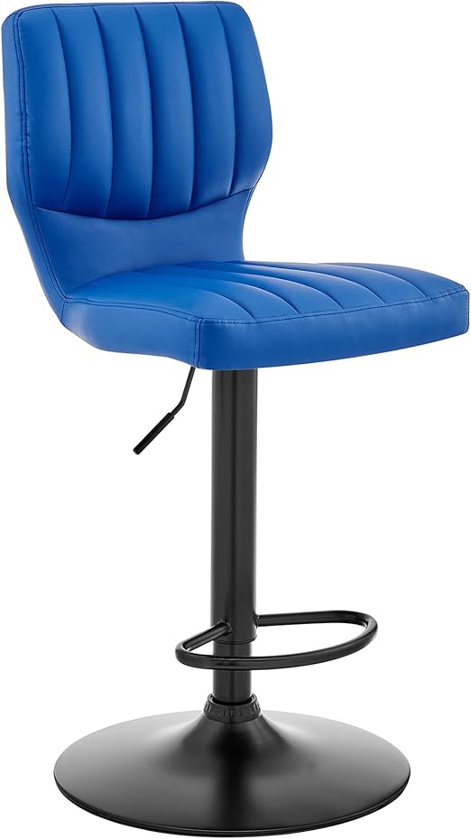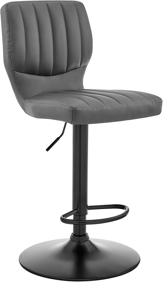 Modern adjustable bar stool featuring high-grade faux leather upholstery with textured-lined seat back. The thick, plush foam-padded seating provides exceptional comfort and support for extended sitting periods.