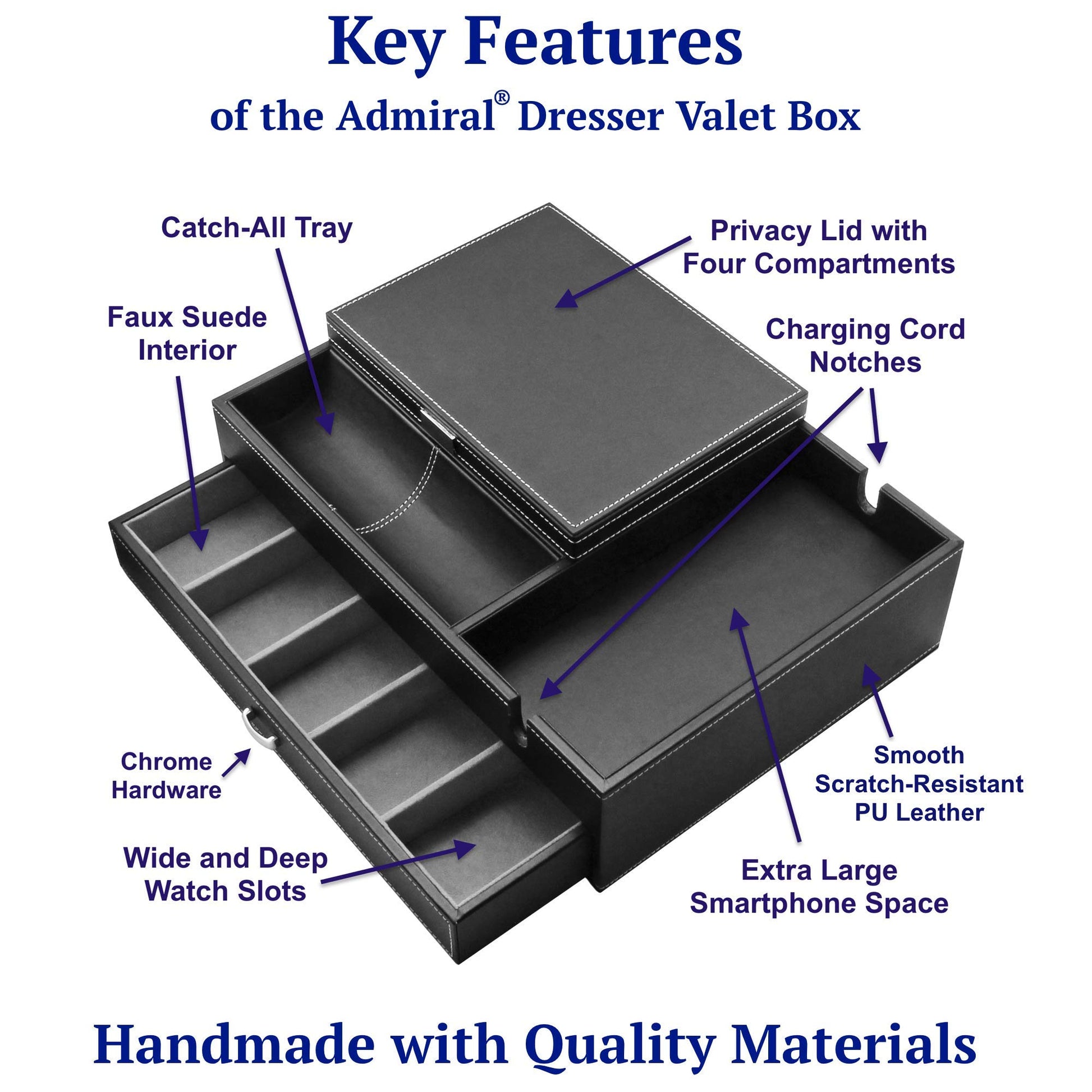 Admiral Dresser Valet Box with Smartphone Charging Station