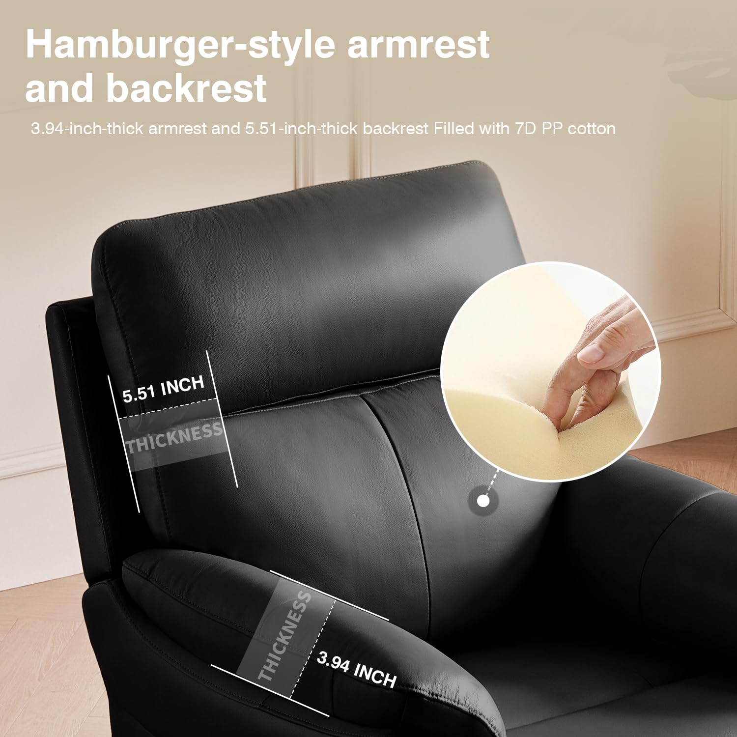- Hamburger-style Backrest and Armrest: The lazy boy recliner chair backrest and armrests feature an extra-thick design, filled with formaldehyde-free 7D PP cotton.
