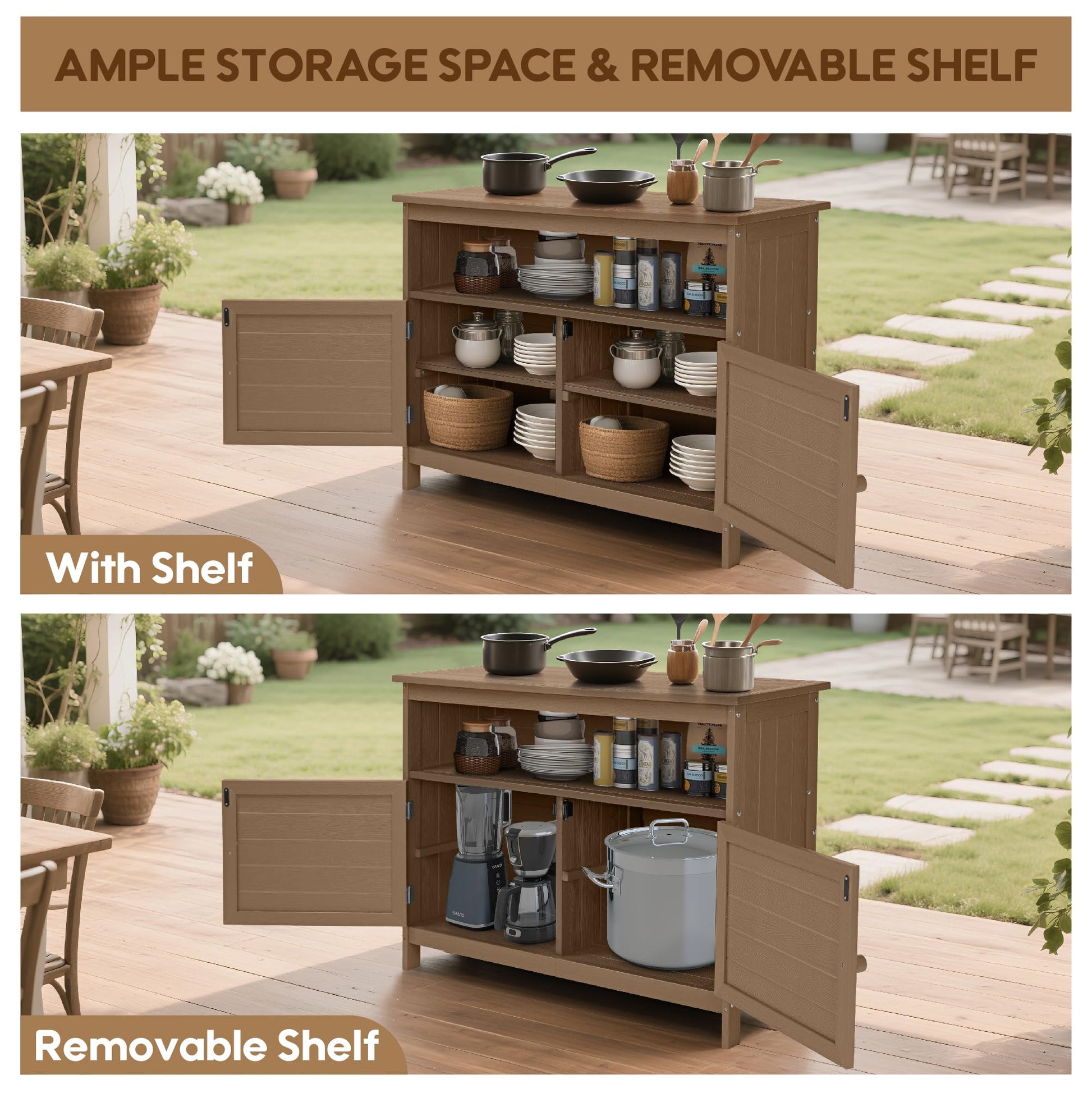 Transform your outdoor space with this premium all-weather storage cabinet. Engineered from high-quality HIPS plastic, this durable sideboard withstands extreme temperatures from -40°F to 176°F while resisting UV rays, water, and fading. Unlike traditional wood cabinets that require constant maintenance, this cabinet stays flawless for decades with zero upkeep.