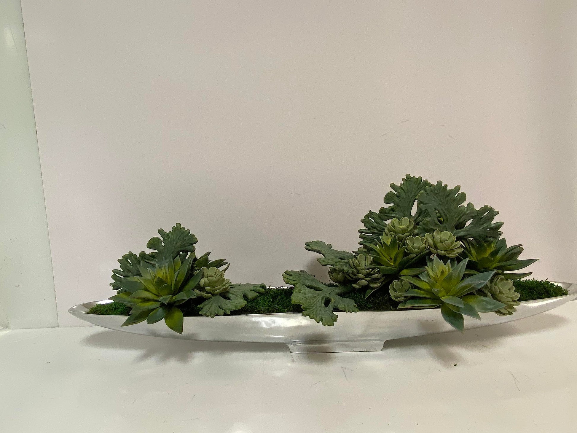 Crafted from durable aluminum with a polished silver finish, this bowl combines lightweight construction with lasting quality. The elongated boat shape adds visual interest and sophistication to any space.