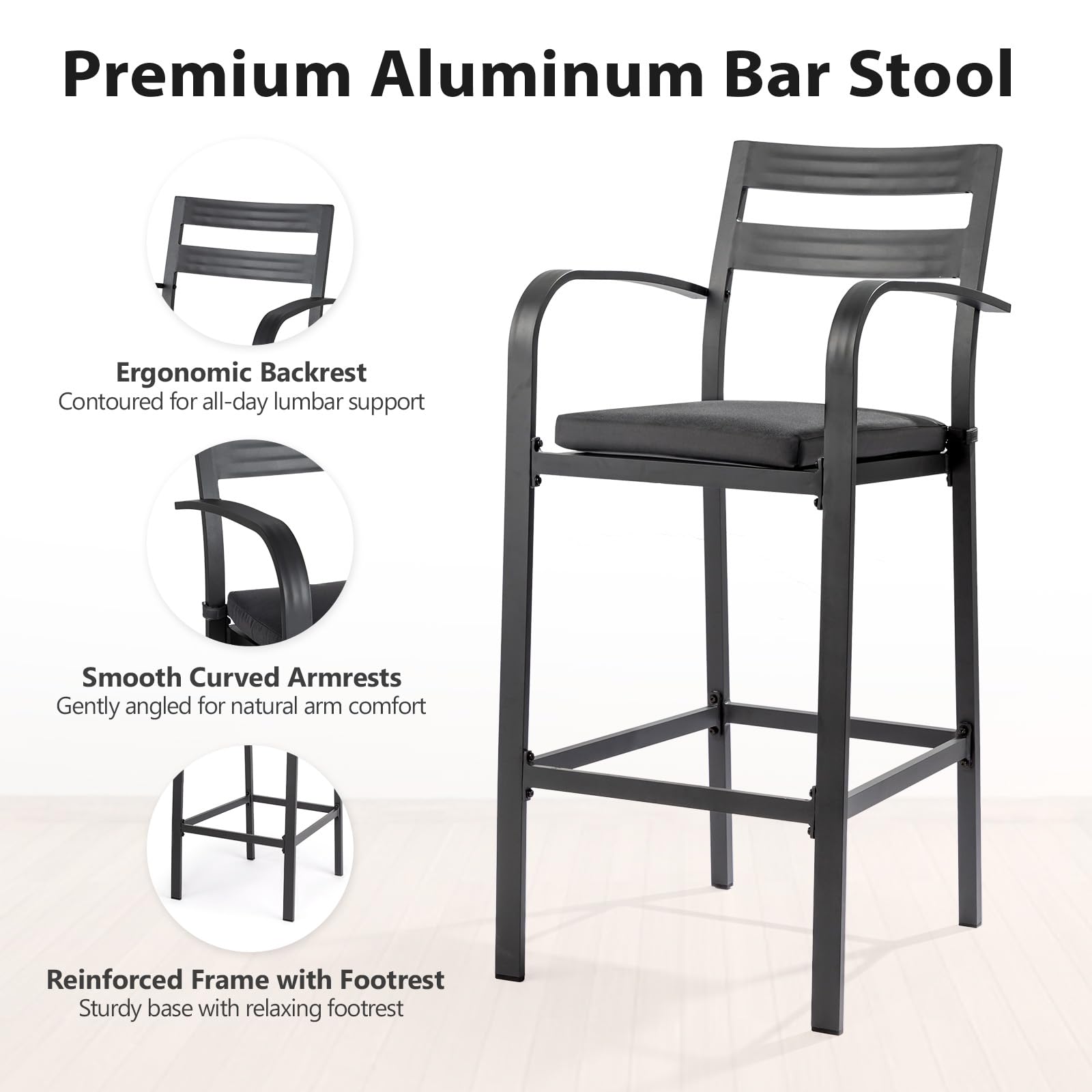 - Premium Durability: Crafted from high-grade aluminum with an all-weather resistant finish, these barstools are built to resist rust and fading. Ideal for long-term outdoor use in any climate.