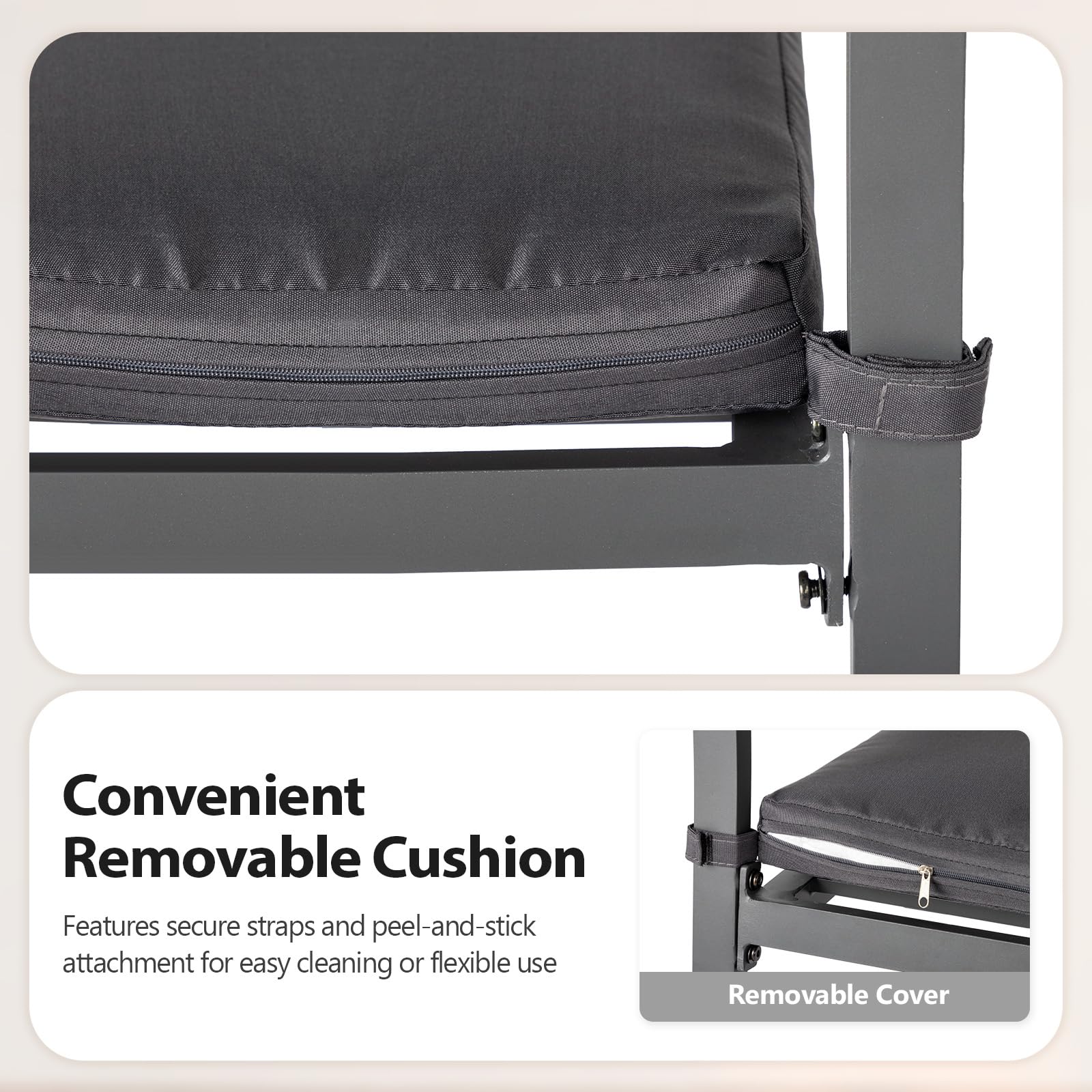 - Ergonomic Comfort: Features a curved backrest, high armrests, and a built-in footrest for relaxed seating. The 1.6" thick cushion with tie-down straps stays securely in place, providing extra comfort.