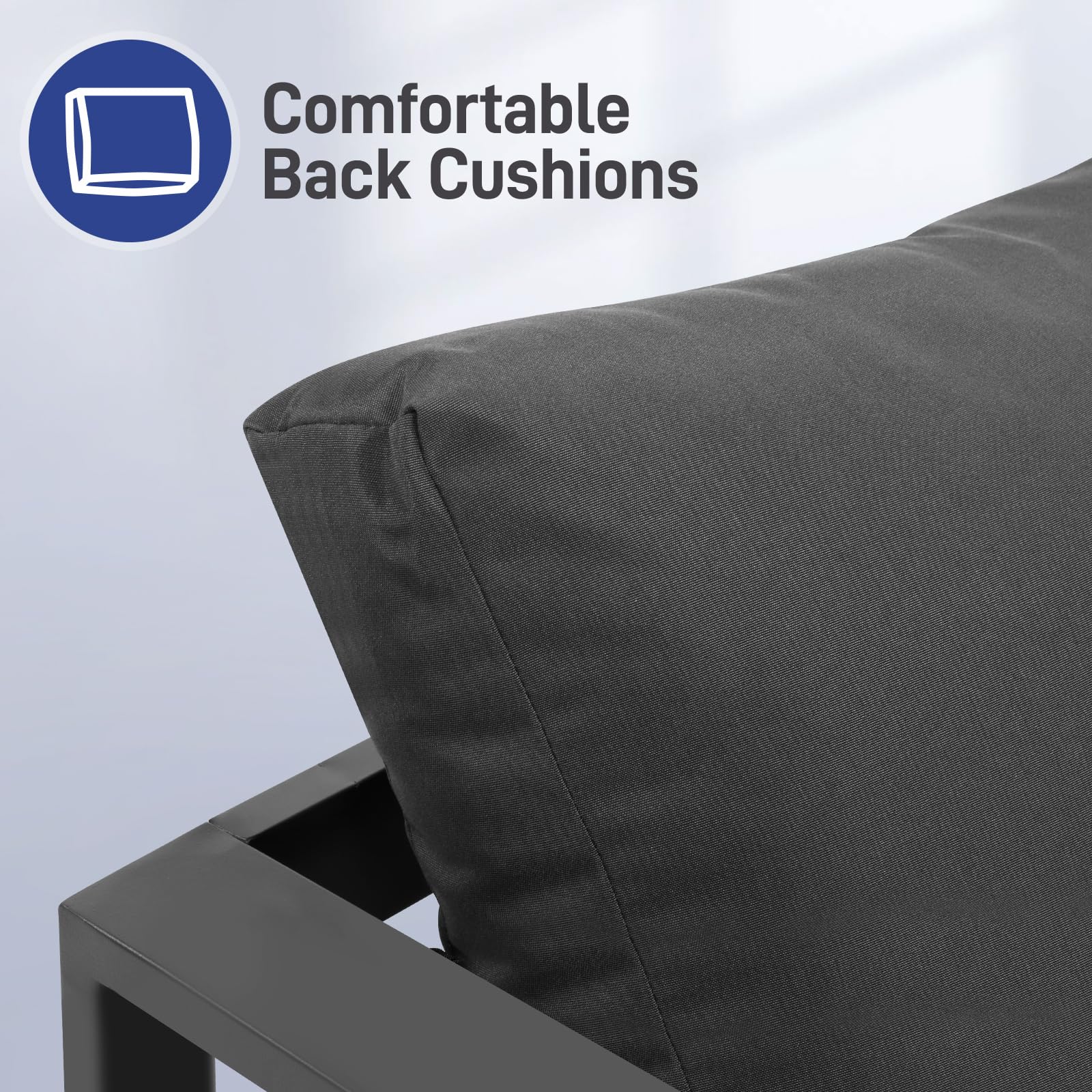 Transform your outdoor space with this modern aluminum patio loveseat set. Designed for all-weather durability, this contemporary furniture set combines sleek metal construction with plush, washable cushions for year-round comfort.