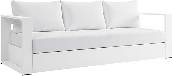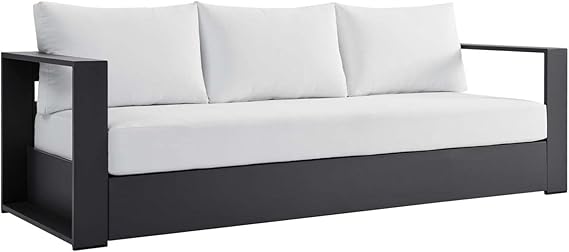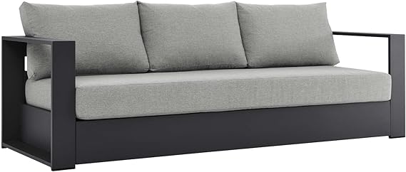 Enliven your alfresco spaces with this modern aluminum outdoor patio sofa. Constructed with durable powder-coated aluminum, this contemporary outdoor sofa brings elegance to all your outdoor lounge spaces.