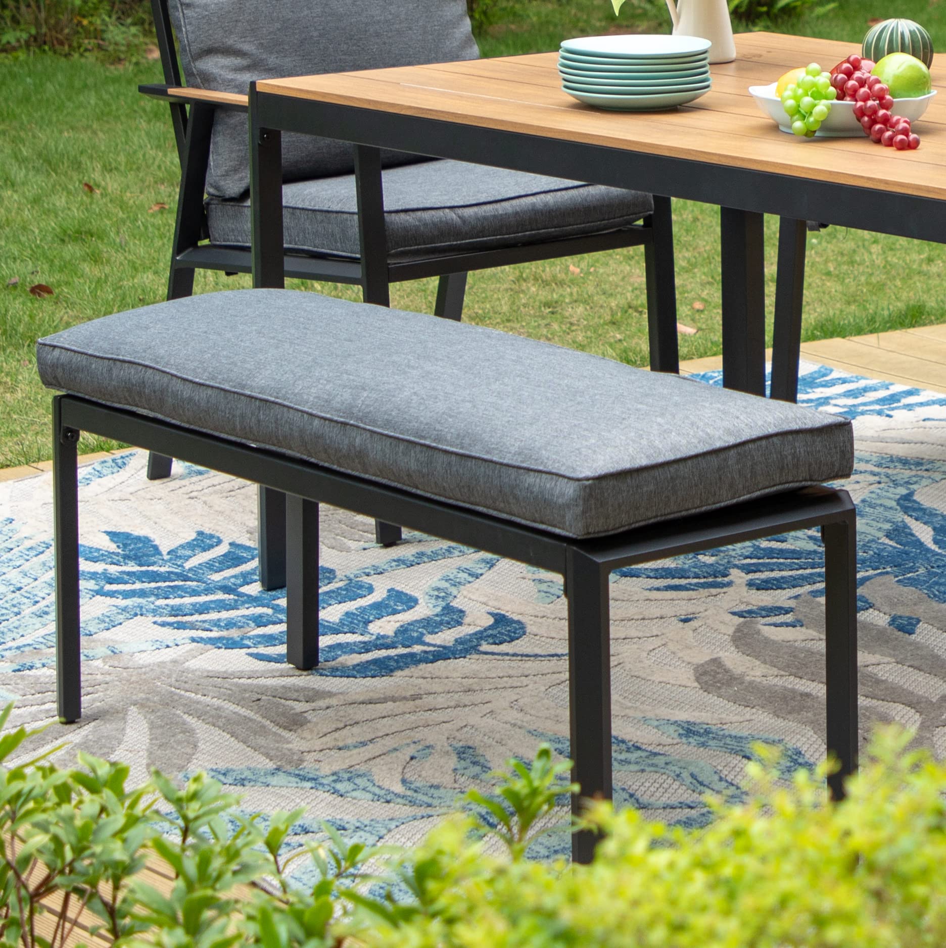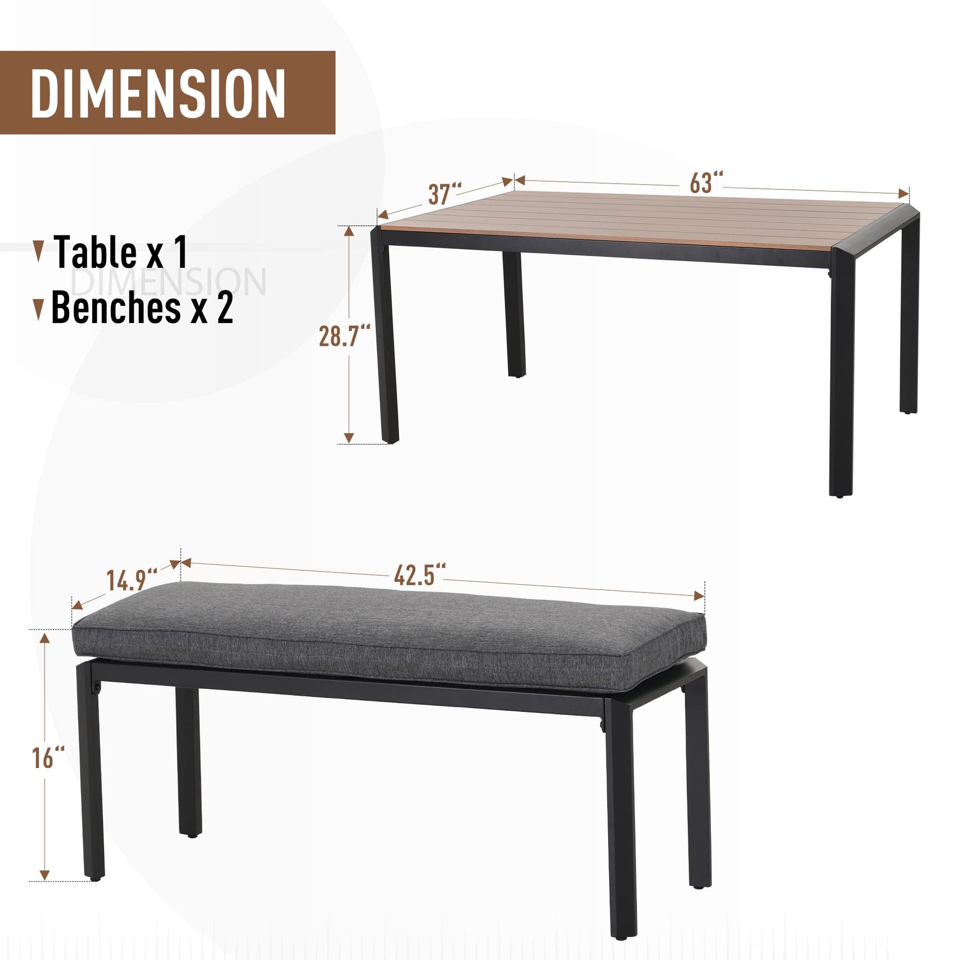 Transform your outdoor space with this complete 3-piece patio dining set, designed for comfort and durability. This set includes one spacious dining table and two cushioned benches, perfect for family gatherings and outdoor entertaining.