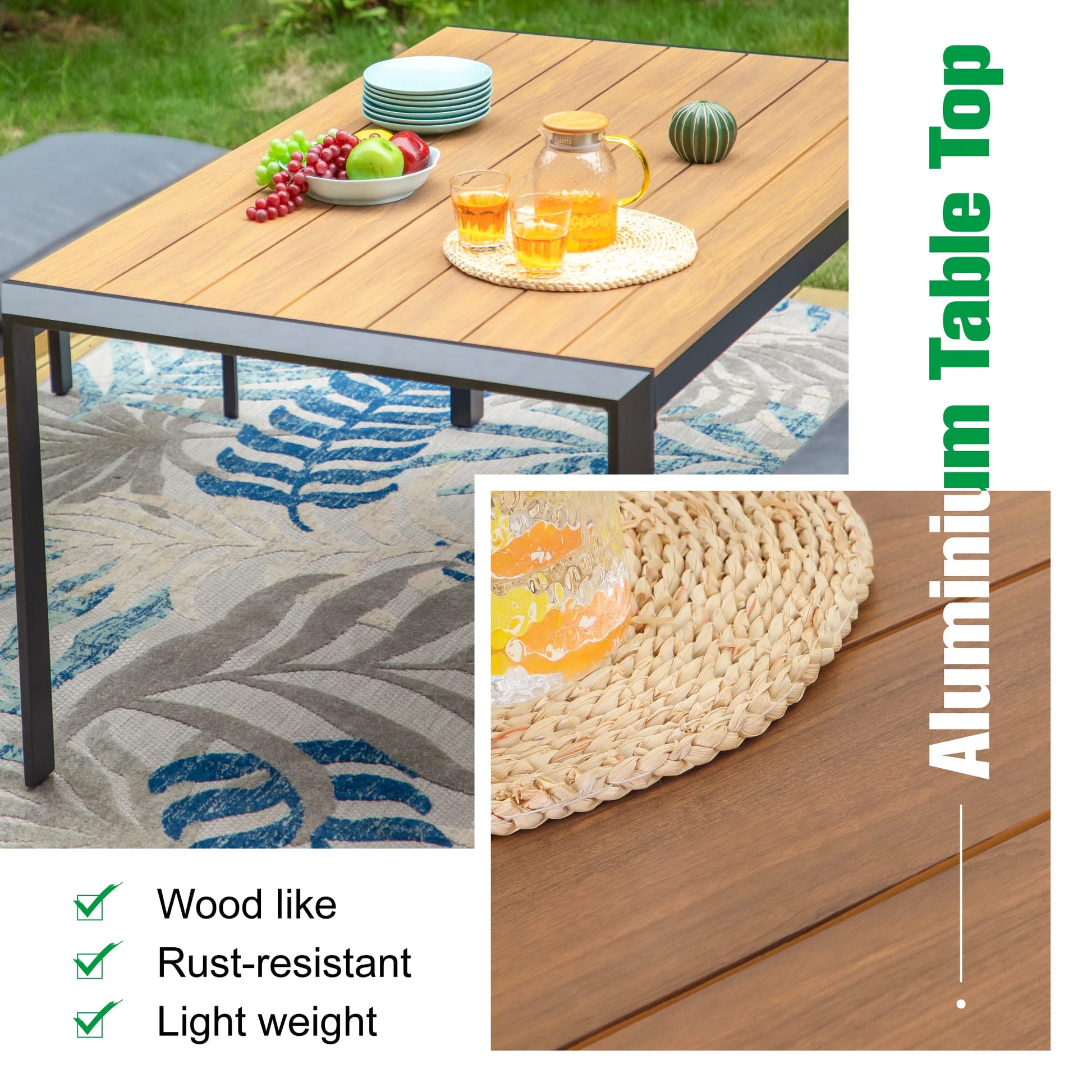 This versatile outdoor dining set combines functionality with style, making it an excellent addition to any outdoor living space. The aluminum construction ensures resistance to rust and corrosion, while the included cushions provide added comfort for extended outdoor dining experiences.