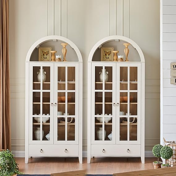 Arched Cabinet with Glass Doors and Adjustable Shelves