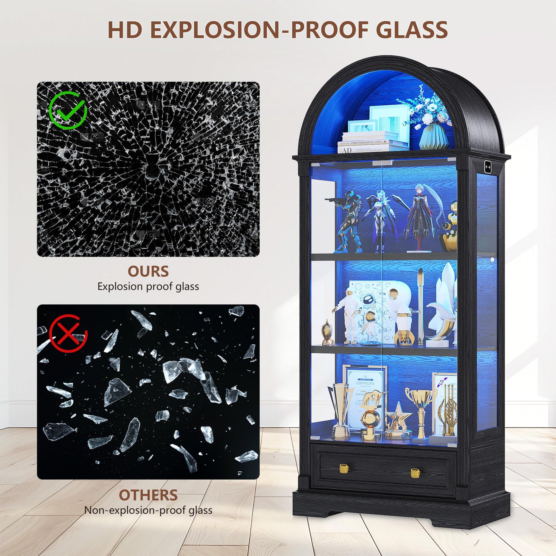 Elevate your space with this elegant arched glass display cabinet featuring smart sensor lighting and premium tempered glass doors. Perfect for showcasing collectibles, china, books, or decorative items in your living room, dining area, or home office.
