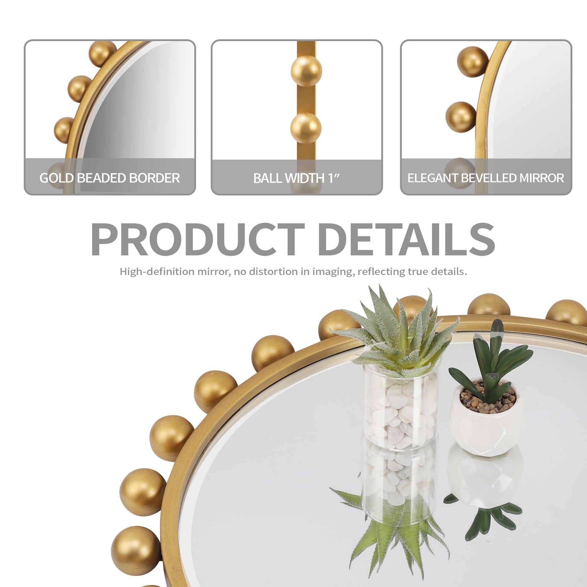 Elegant arched wall mirror featuring a distinctive antique gold ball frame design with premium beveled glass. This decorative mirror combines classic styling with modern craftsmanship to create a stunning focal point for any room.