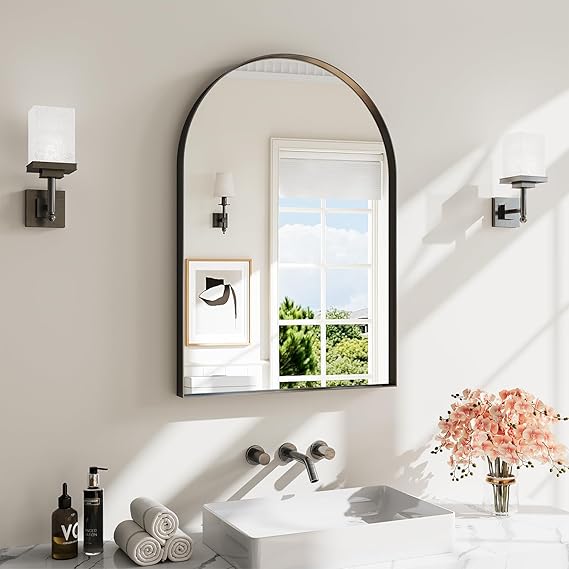 Arched Wall Mirror 30x48 Black Aluminum Frame